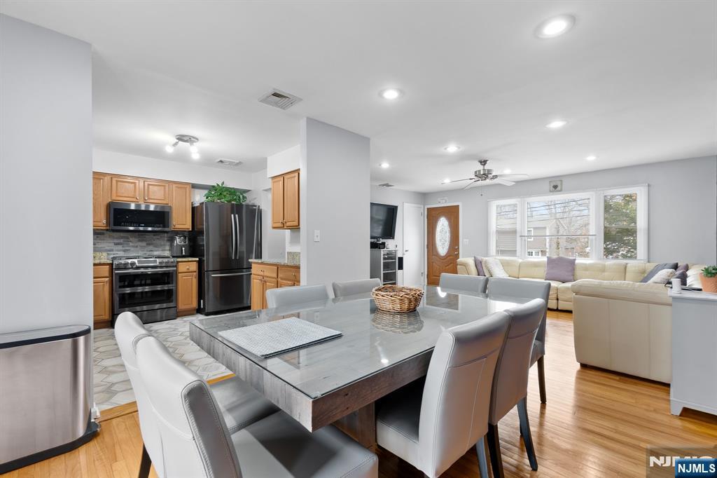 Welcome to this beautifully maintained 3-bedroom, 2 full bathroom home nestled on a quiet residential street in the desirable town of Oakland, New Jersey. Combining comfort, space, and modern updates, this move-in-ready residence offers the perfect blend of everyday living and effortless entertaining. Step inside to discover a bright and inviting main living area featuring hardwood floors and an open, welcoming layout. The living and dining area flows seamlessly into the kitchen, creating an ideal space for gatherings. The kitchen offers abundant cabinetry, modern appliances, and a functional layout designed for both convenience and style. The primary bedroom includes its own private full bathroom. The fully finished lower level provides additional flexible living space perfect for a recreation room, home office, or guest area. Enjoy outdoor living on the spacious deck overlooking a large backyard, offering plenty of room for entertaining, gardening, or relaxing. This home is conveniently located near local parks, shopping, and major commuting routes, with nearby access to outdoor recreation at Ramapo Mountain State Forest.