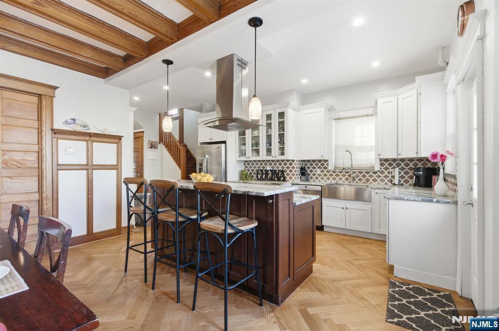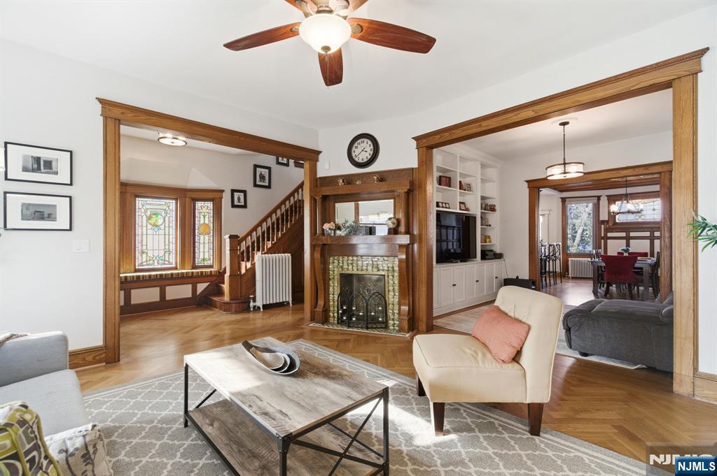 Set on a full 29 x 105 lot in Jersey City's McGinley Square, this grand Tudor Victorian offers a rare combination of scale, modern renovations and location seldom found this close to NYC. With 7 bedrooms and 3 bathrooms, the home features a renovated kitchen, central air conditioning, and new systems including all new electrical, providing modern comfort & peace of mind. These thoughtful upgrades are beautifully complemented by preserved architectural details including stained glass, parquet floors, restored woodwork, and elegant pocket doors. The main living spaces are expansive yet inviting, filled with natural light from bay windows & thoughtfully designed for both entertaining & everyday living. Outside, a landscaped low maintenance yard & dedicated parking with an EV charger add conveniences rarely available with homes of this character, with additional parking possible directly in front of the driveway. The location further elevates the offering. Just a 10 minute walk to 273 acre Lincoln Park & approximately a 30 minute door to door PATH commute to the Financial District, the home provides an ideal balance of green space & city connectivity. Newark Liberty International Airport is also just a short 20 minute drive, making regional and international travel remarkably convenient. Offering exceptional interior space, outdoor living, private parking, modern renovations & close proximity to transportation and parks, this is truly a one of a kind single family opportunity!