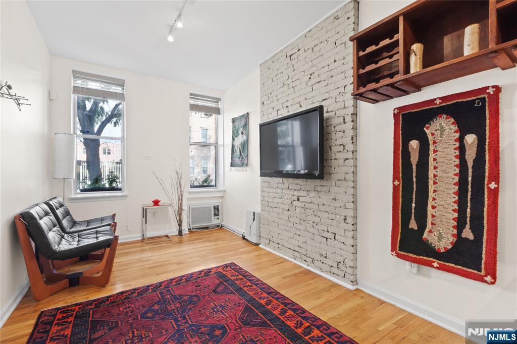 A rare find is this very special One Bedroom/One Bath offering a secluded private deck that descends to your very own private yard! This charming home is a rare Hoboken gem as it is a phenomenal way to get the kind of outdoor space you’d only expect to get with a much larger condo or even a single family home. Private deck off of rear bedroom descends to patio and fence enclosed backyard haven. If you are a dog owner, barbeque specialist, or a serious garden or outdoor space lover you need not look any further! Part of the comfort and attributes that make this home appealing include stainless/granite kitchen with breakfast bar, attractive lighting, lovely and quiet comfortably sized bedroom overlooking your outdoor oasis. Also boasts hardwood floors throughout, charming exposed brick in living area and bedroom, new mini-split heat/cooling system, washer/dryer and storage in building. Among Hoboken's shops, eateries, parks, 1st Street pubs, nightlife, and nearby Sky Club gym. Easy commute- with buses to NYC, near 2nd St Light Rail, Blue Hop shuttle at your corner to PATH and NJ transit trains. A one bedroom home that has a lot going on at a superb downtown location near all Hoboken has to offer.