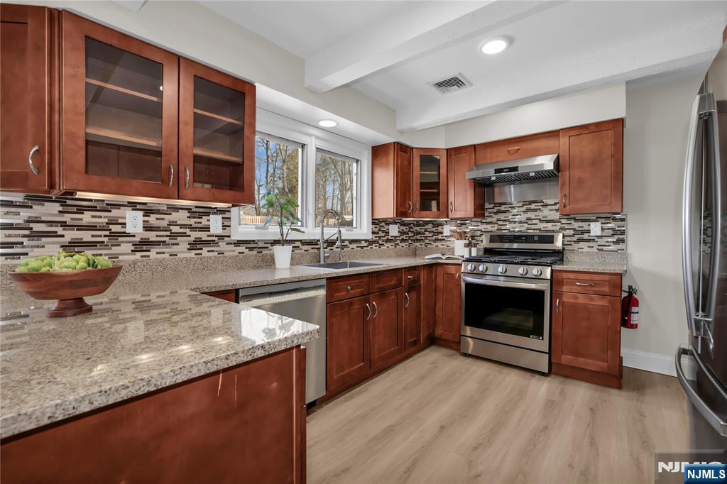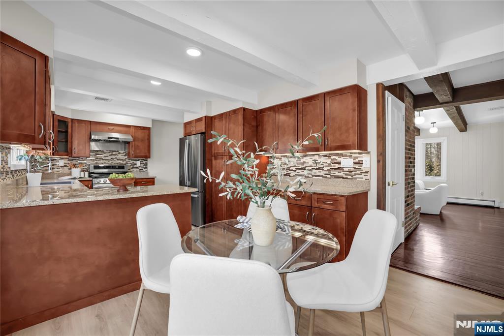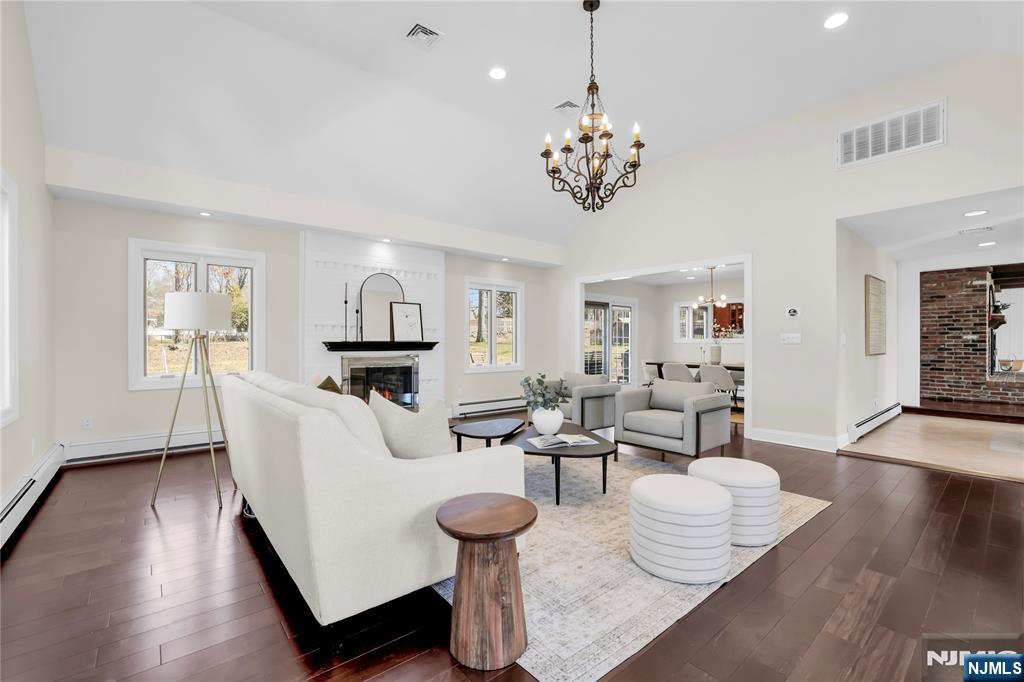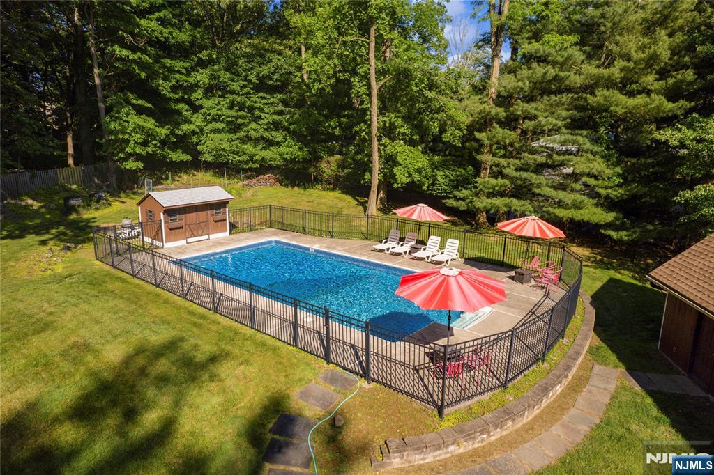 Inspired by Frank Lloyd Wright, this modern-rustic oversized ranch is situated in one of the best locations in USR. Nestled in a secure, friendly neighborhood, it offers easy access to top-rated schools, parks, the library, and an express bus to NYC. The home features a magnificent flat backyard with a 20' x 40' heated pool; sun-drenched great room with vaulted ceilings; an efficient open layout with southern exposure; abundant closets and storage; three wood-burning fireplaces; a convenient laundry room adjacent to the kitchen; and a private 4th-bedroom suite on the second floor. Brazilian chestnut wood floors run throughout. Updates include a new roof, new siding, new front steps and side steps, new windows and blinds, new AC units, a new kitchen floor, new appliances, fresh paint, newer pool equipment, new basement carpet, and modernized bathrooms. This is a once-in-a-lifetime opportunity to own your dream home with exceptional convenience and a truly suburban lifestyle. * Retaining walls sold as is. Owner holds NJ real estate license.