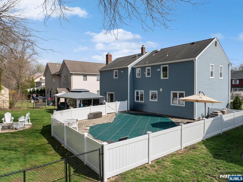 Welcome to this beautifully maintained 4-bedroom home on the highly sought-after East Side of Fair Lawn, offering the ideal blend of space, comfort, and lifestyle. Step inside to a bright, inviting layout featuring gleaming hardwood floors, crown molding, and generously sized living and family room with fireplace. The updated kitchen offers ample cabinetry, stainless steel appliances, and a sun-filled dining area overlooking the backyard. Upstairs, the spacious primary suite provides a peaceful retreat with a 5-piece en suite and large walk-in closet. The three additional bedrooms offer flexibility for family, guests, or a home office. The fully finished basement adds even more living space, ideal for a media room, playroom, gym, or all three. Out back is where this home really delivers. The private, fully fenced yard is built for entertaining, featuring a paver patio, gazebo seating area, and a beautiful in-ground pool. Whether you're hosting a crowd or enjoying a quiet night in, this backyard checks every box! Additional highlights include central air, a two-car garage, and a prime location close to top-rated schools, parks, houses of worship, and NYC transportation. Move right in and start enjoying everything Fair Lawn has to offer.