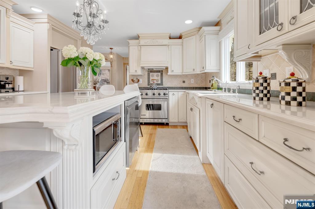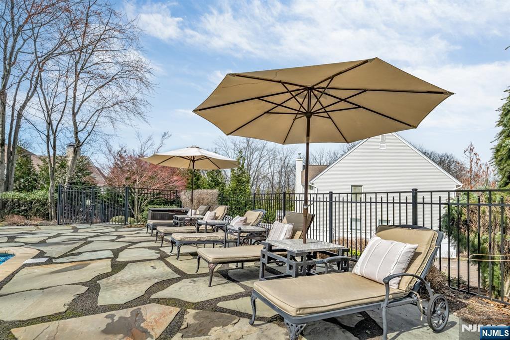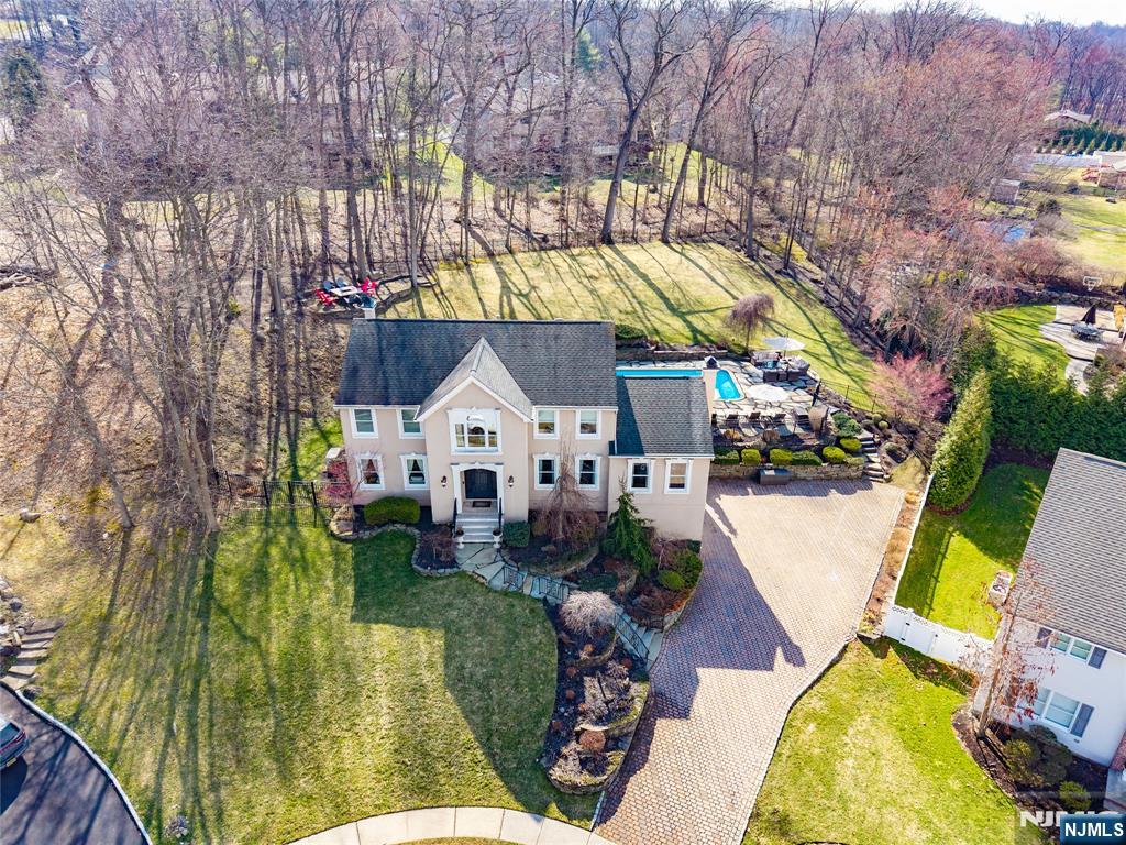 Stately Colonial set on a quiet cul-de-sac in one of Wayne’s most desirable neighborhoods. This beautifully updated and completely renovated home offers the perfect blend of timeless design and modern upgrades, ideal for both everyday living and entertaining, & features a true backyard oasis. A spacious entry foyer leads to formal LR and DR, while the dramatic family room features vaulted ceilings, a fireplace, & iron French doors that open to the backyard. The gourmet eat-in kitchen is equipped with custom cabinetry, new marble countertops, center island, Viking stove. Bedroom on the main level & half bath with backyard access for pool guest convenience! Upstairs, the primary suite offers a walk-in closet & a beautiful en-suite bath. Dreamy brand new laundry room and 3 addt'l bedrooms plus a newly renovated hall bath complete the second level. A finished basement provides additional rec and living space, with a partially finished bonus space that would make a great office or gym in the future. The backyard is a true highlight, offering a private, resort-style setting with a heated in-ground pool (brand new liner), limestone patio, custom wood-burning firepit, & a fully equipped outdoor kitchen with grill, burner, & warmer. Additional features include custom iron front and rear doors, custom paint, high-impact storm windows, whole house generator, two-car garage, and a brick paver driveway. Ideally located close to top-rated schools, shopping, parks, & NYC access.