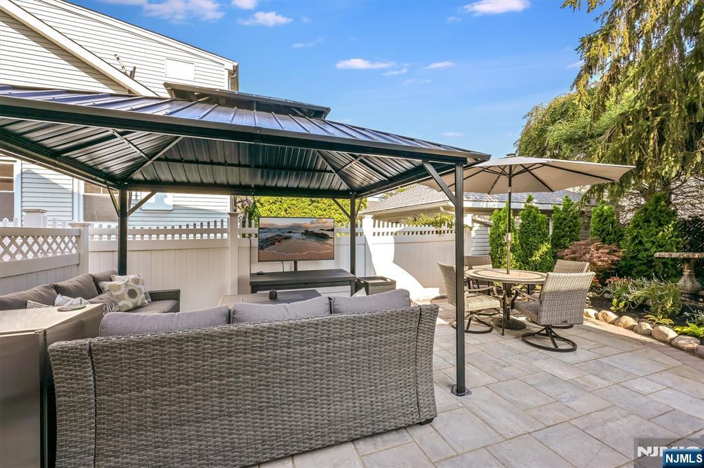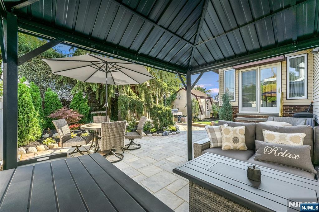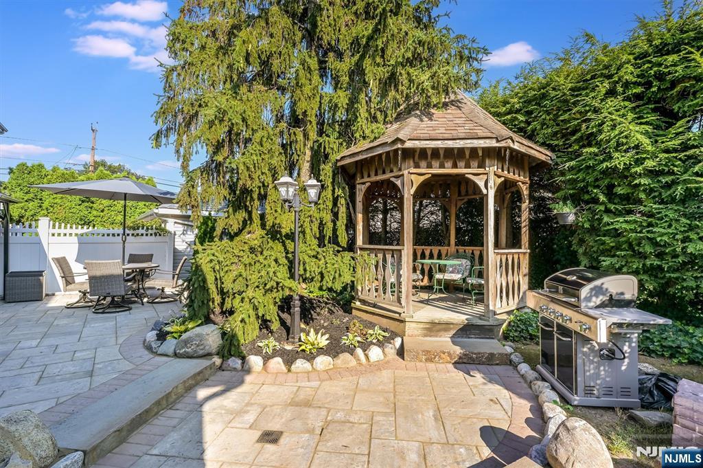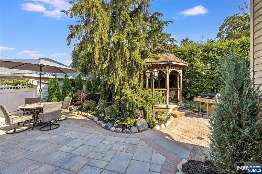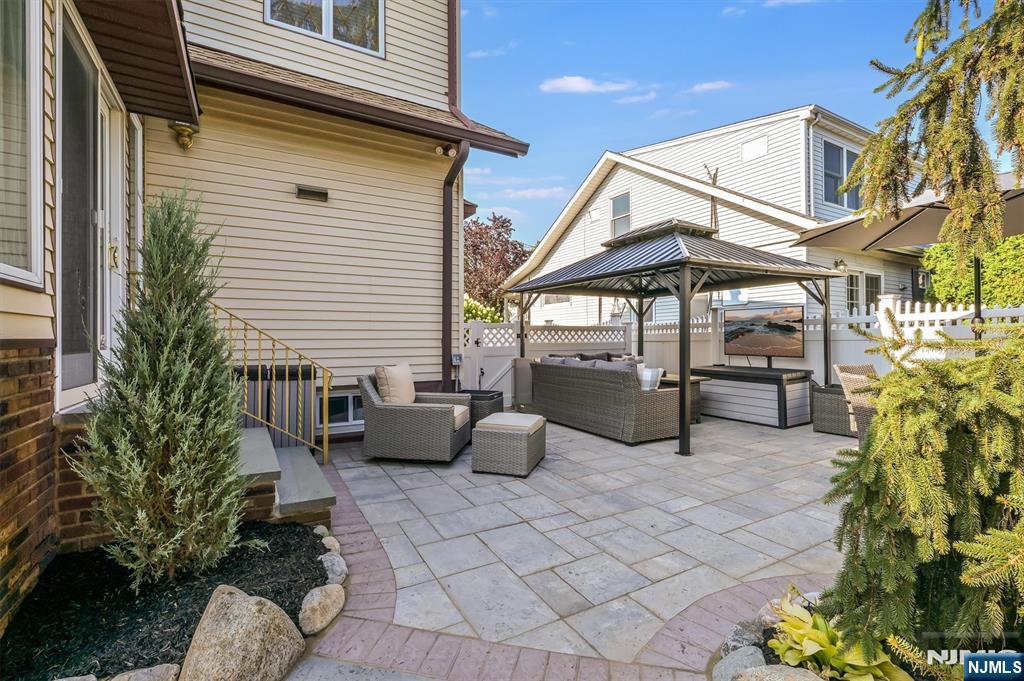 Beautifully updated home offering a blend of modern upgrades and functional living space throughout. The entry welcomes you into a bright living room featuring a bay window, recessed lighting, and an open staircase. The main level includes an office/bedroom, a half bath with marble finishes, a renovated eat-in kitchen with granite countertops, a center island, custom cabinetry, newer appliances, and a decorative tile backsplash. Step down to a family room with a wall of windows bringing in a ton of natural light with a sliding door leading to the backyard. 2nd floor offers two generously sized bedrooms, full hall bath w/ double sink, tub, and separate stall shower, along with a large linen closet for added storage. The basement is finished with a laundry room and tons of additional storage. Outdoor living is a standout feature with a beautifully maintained yard including brand new paver patios, gazebo, pergola, new stairs, fencing, shed, and professional landscaping, creating the perfect space for entertaining. Conveniently located near schools, shopping, and transportation, this home offers a combination of thoughtful updates, flexible space, and move-in-ready condition.