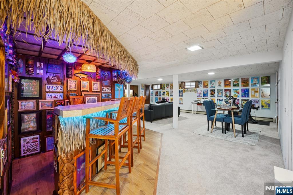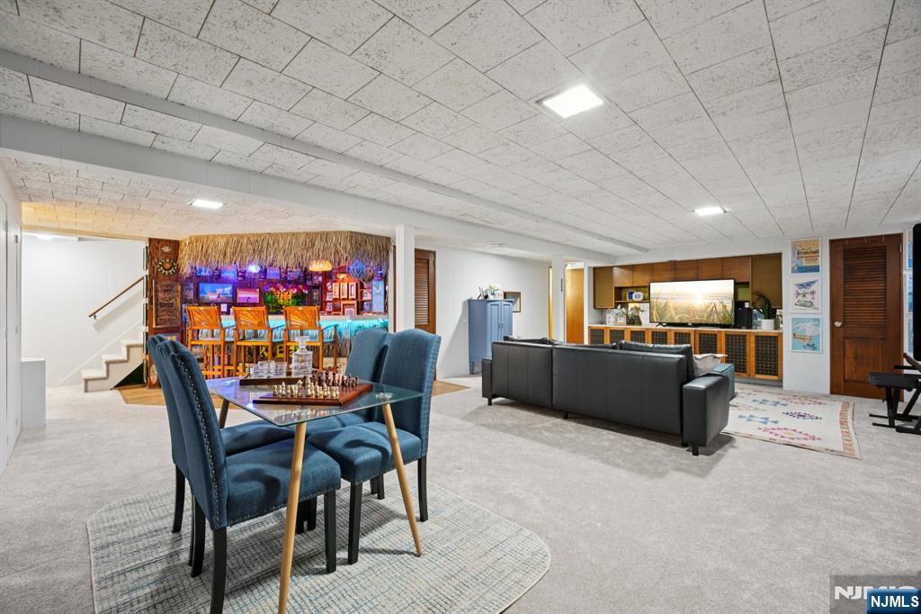 One of the most admired and unique homes in Oradell, this distinctive mid century style residence offers light filled interiors, timeless design, and the ease of one floor living. Hardwood floors flow throughout the main level, creating a warm and seamless connection between the living and dining rooms, perfect for both everyday living and entertaining. The kitchen is equipped with updated appliances and is ideally positioned for easy access to the main gathering spaces. The primary suite offers generous closet space and a private updated bath, while two additional bedrooms share a full hall bath. The fully finished basement extends across the entire footprint of the home, providing exceptional additional living space with wall to wall carpeting, a bar area, powder room, laundry room, and plentiful storage with built in shelving. Outside, enjoy a charming fireplace and multiple seating areas designed for quiet enjoyment or entertaining guests. Notable updates include the roof in 2018, sprinkler system, whole house generator, updated baths, updated appliances, replaced outlets, and a gas line for the grill. Attached one car garage. Ideally located close to the elementary school, library, downtown, parks, and the NYC commuter train. A rare opportunity to own a truly special home in Oradell. Call 201.983.7819 for more details.