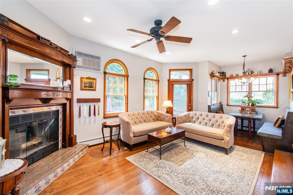 Welcome to this Four bedroom, three full bath Colonial featuring a charming lemonade porch. This home offers character and warmth of a by gone era while thoughtfully incorporating the conveniences of today. Step into the entrance foyer through the French door and you'll find an inviting living room with a wood burning fireplace and a light filled formal dining room perfect for entertaining. The kitchen with granite countertops is the the heart of the home, that features a quartz center island with seating, a cozy breakfast area and easy access to the family room with a second wood burning fireplace and a door to the paver patio. The main level also includes a full bath, laundry and the entrance to the mudroom/backdoor area and the partially finished basement. Upstairs.... the spacious primary suite with a volume beam ceiling includes a full bath, walk in closet and office area, along with three additional bedrooms and another full bath. Conveniently located near schools, parks, shopping & transportation. Truly a special home!