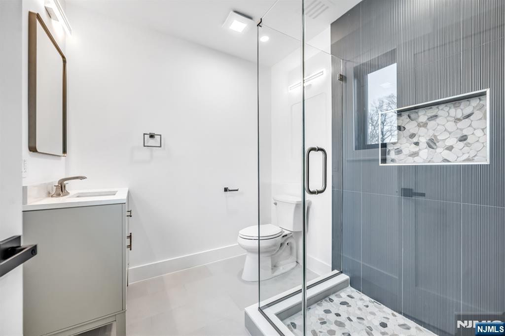 Introducing a newly constructed luxury residence in one of Paramus’s most desired neighborhoods. This exceptional home seamlessly blends modern sophistication with thoughtful design, offering 6 spacious bedrooms and 6.5 luxuriously furnished bathrooms. A grand two-story foyer creates a striking first impression, flowing effortlessly into an elegant formal dining room. The main level is defined by soaring ceilings and a luminous open-concept layout, connecting the living room, a state-of-the-art gourmet kitchen, and a sun-drenched great room framed by oversized windows that fill the space with natural light. A private first-floor guest suite provides both comfort and convenience. Upstairs, an open hallway overlooks the foyer and is enhanced by a statement window, creating an airy, refined ambiance. Four generously sized bedrooms, each with its own en suite bath, complement the luxurious primary suite, complete with dual walk-in closets and custom built-ins. The fully finished lower level is designed for elevated living and entertaining, featuring high ceilings, a spacious recreation area, home gym, private theater, additional suite, and a sleek wet barâ€â€perfect for hosting or everyday enjoyment. This is a rare opportunity to own a thoughtfully designed , move-in-ready luxury home in the heart of Paramus.