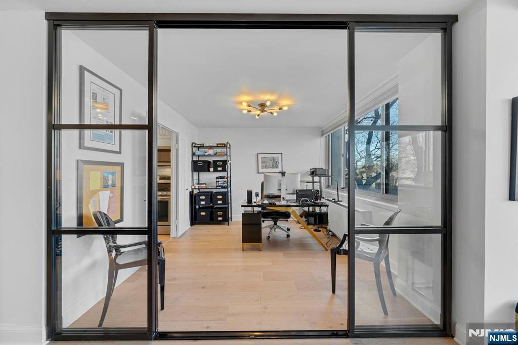 Beautifully renovated and truly move-in ready, this sophisticated one-bedroom residence with a dedicated home office offers an exceptional blend of style and functionality. The terrace has been seamlessly enclosed and thoughtfully integrated into the living space, expanding the home to approximately 1,299 square feet of refined interior living. Brand-new wide plank wood flooring flows throughout, adding warmth and a modern, elevated aesthetic, while custom-designed sliding glass doors elegantly frame the home office, creating a striking architectural feature and maintaining an open, light-filled ambiance. The spacious bedroom serves as a serene retreat, complete with a beautifully updated ensuite bathroom featuring a large walk-in shower, and a chic powder room adds convenience for guests. Abundant closet space throughout enhances both comfort and practicality. Century Tower offers a full suite of luxury amenities, including a 24-hour doorman and concierge, attended garage, heated outdoor pool, fully equipped fitness center, recreation room, community room, private storage, and more. Ideally located near shopping, restaurants, houses of worship, and major highways, with easy access to New York City. Parking available for $90/month. Subject to Board approval.