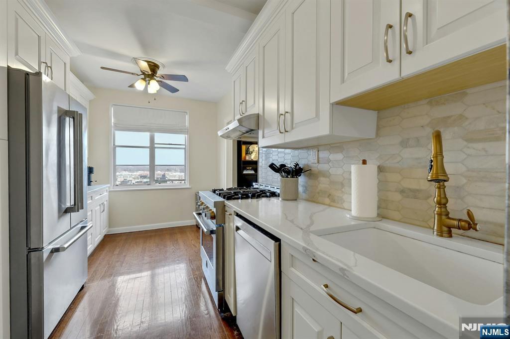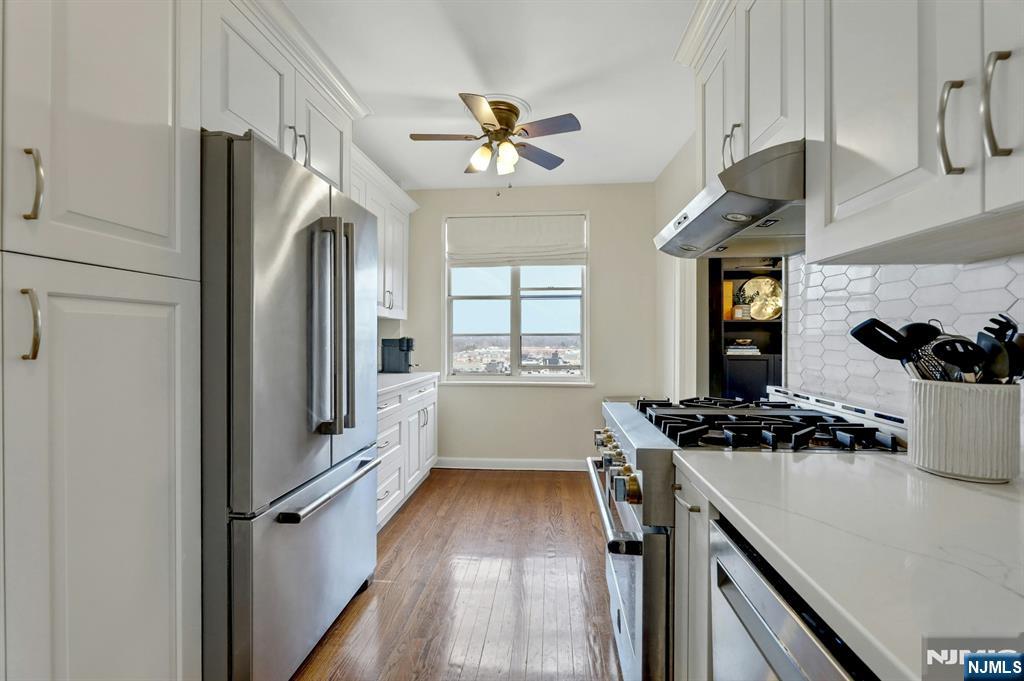 Experience the timeless elegance of this Art Deco gem in the heart of Englewood! This elevator-access unit offers effortless one-floor living with high ceilings and expansive, sun-drenched rooms throughout. The heart of the home is a beautifully renovated eat-in kitchen with ample space for a breakfast table. Relax or entertain in the oversized living/dining combo featuring a classic fireplace. This unit includes two spacious bedrooms, a sleek full bath, and the convenience of on-site laundry and a private gym. Commuting is a breeze with the NYC bus right at your door, while the vibrant Englewood downtownâ€â€packed with premier dining, shopping, and entertainmentâ€â€is just blocks away. Best of all, this unit comes with the rare convenience of a one-car garage and beautifully manicured grounds surrounding the building. A perfect blend of vintage character and modern convenience in a premier Northern Jersey location.