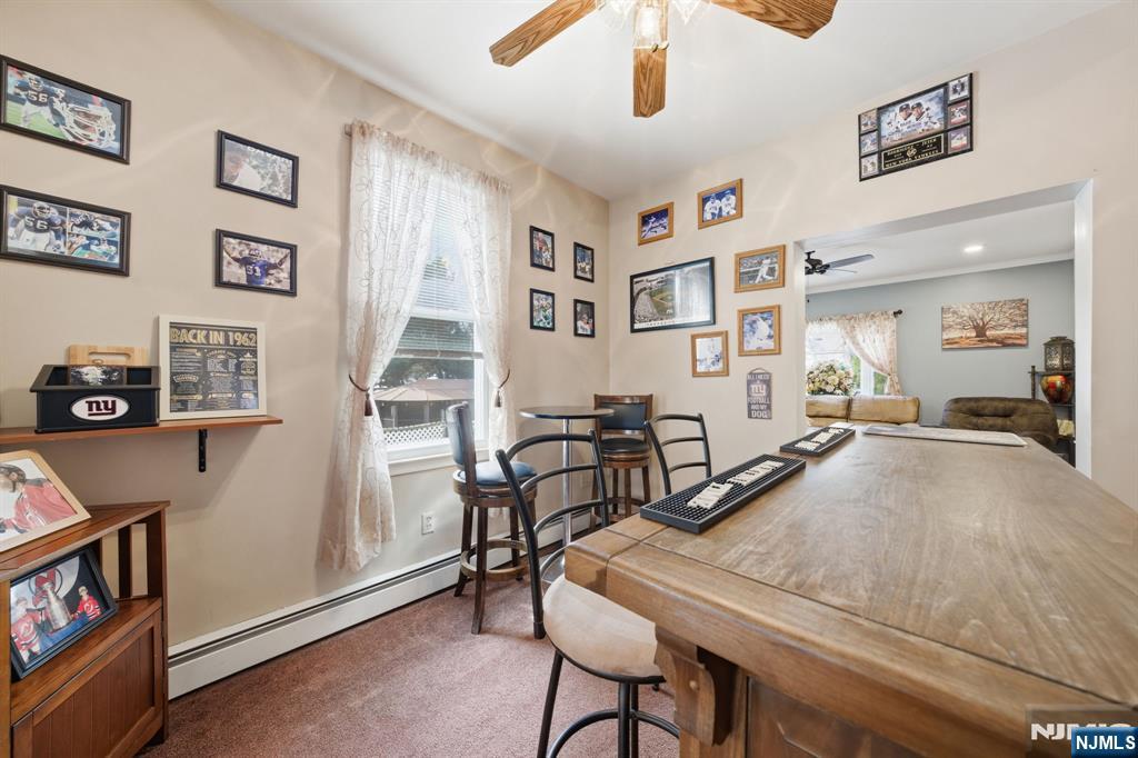 This beautifully maintained / updated 4-bedroom, 2.1-bath Colonial in the heart of East Rutherford delivers space, style, and a backyard that will stop you in your tracks.The kitchen features granite countertops, custom cabinetry, stainless steel appliances, and a tile backsplash that makes cooking feel like an event. The formal dining room flows seamlessly into spacious living areas and a living room with recessed lighting and ceiling fans throughout. A bonus room off the main living area gives you the flexibility of a home bar, game room, or entertainment space. Upstairs, four generously sized bedrooms provide the space today's buyers demand, with 2 full baths at your disposal. The basement has an oversized room with flexible uses. Outside is where this home truly delivers. A massive paver patio, screened-in gazebo, lush yard, fire pit, and storage shed make this backyard an entertainer's dream, RARE for Bergen County. Five off-street parking spaces round out a package you won't find twice. And the taxes? Some of the lowest you'll find anywhere in Bergen County. Close to all major highways, trains and buses. Homes like this don't sit. Schedule your showing today