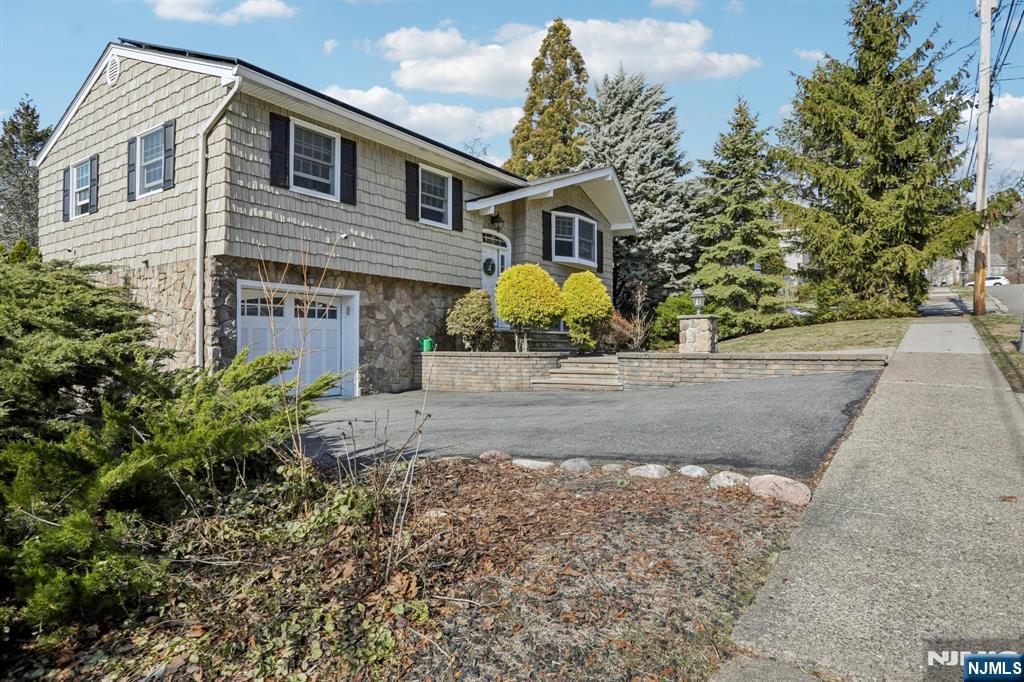 Immaculate, move-in ready Bi-level featuring a welcoming brick walkway and newer front door. The main level offers a bright Living room flowing into the Dining room with crown molding and sliders to deck, along with an Eat-in kitchen equipped with stainless steel appliances and breakfast bar. The Master Bedroom includes sliders to the deck and a private Half Bath, while two additional Bedrooms and a Full Bath complete this level. The walk-out ground level features Family room with access to the rear patio, Den, Laundry room, new Full Bath, and entry to one-car garage. Professionally landscaped, private backyard is perfect for relaxing or entertaining, showcasing a heated in-ground pool with underground lighting, new deck with sunset views, brick paver patio with fire pit, and storage shed. Additional highlights include a newer roof and an excellent location close to shopping, parks, and major highways.