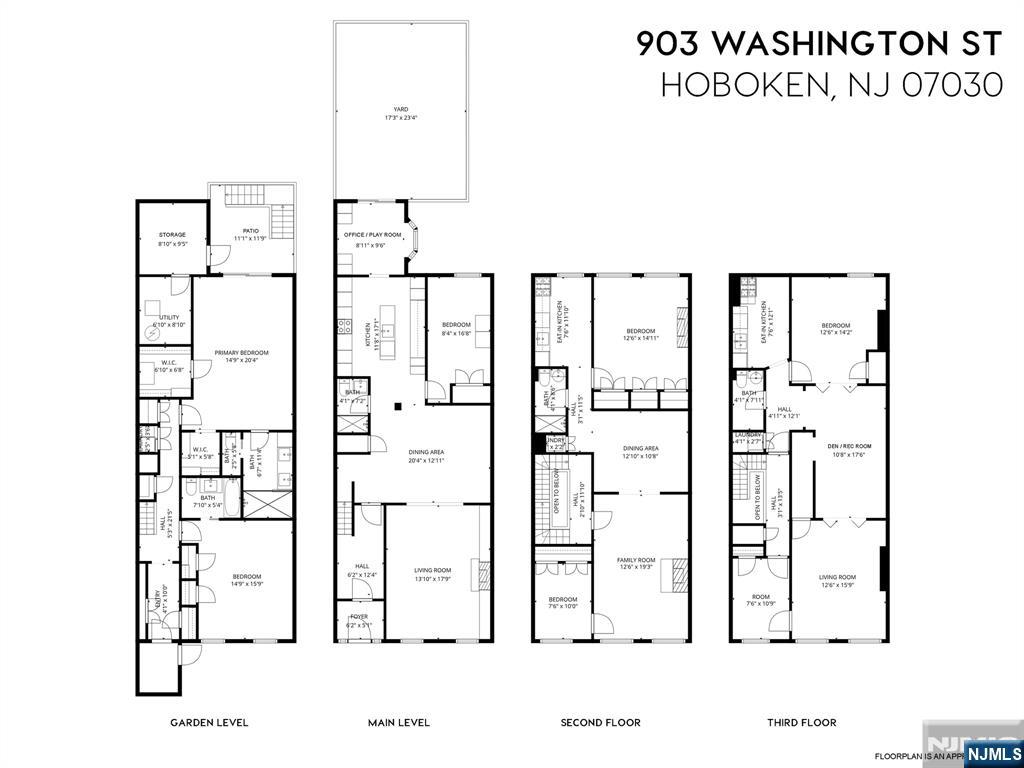 Exquisite Midtown Hoboken Brownstone on Prestigious Doctor’s Row. This exceptional 3,600+ sf. residence offers the rare opportunity to own a meticulously restored and renovated Brownstone in the heart of Hoboken on prestigious Doctor’s Row. Thoughtfully renovated, this home seamlessly blends timeless architectural charm and detail with today’s most sought after modern upgrades. 22x85 four floors features expansive and beautifully finished living spaces throughout. This is a legal 3 family that is currently configured with a stunning owner’s 3 bedroom 3 bath duplex across the first two floors and 2 beautiful apartments on the top two floors with 10 ft. ceilings, exposed brick, washer/dryer and large living spaces. Easy to convert to a one bedroom or an Incredible opportunity to live while collecting rent, or as a pure investment, you don't want to miss this opportunity in midtown Hoboken in the most coveted neighborhood. Parks, Schools, Cafes, Restaurants, Grocery Stores and transportation, you will love living here!