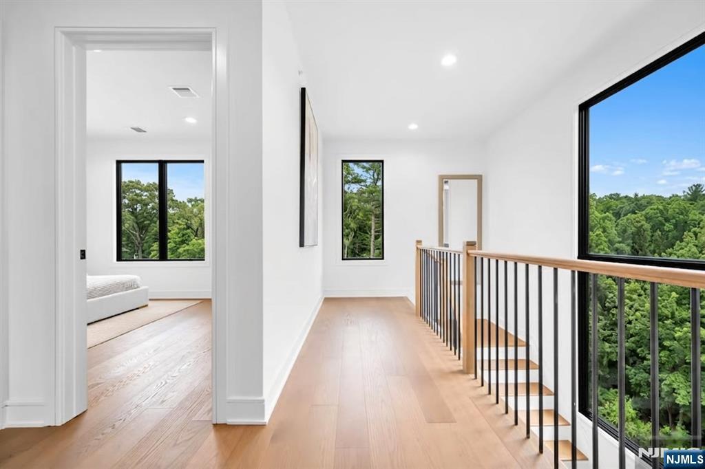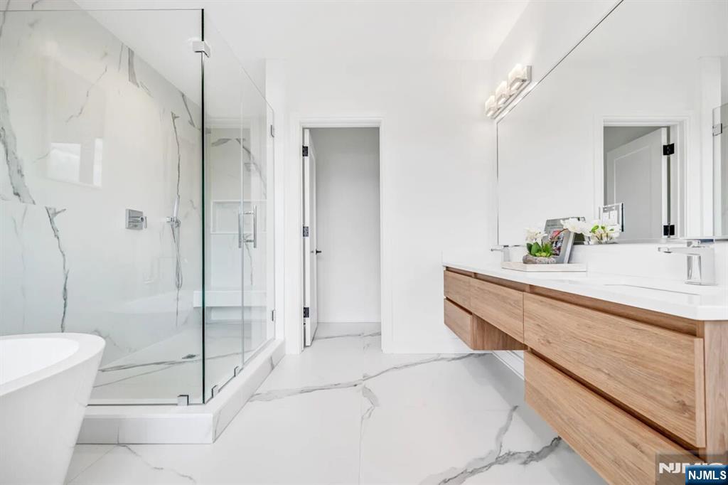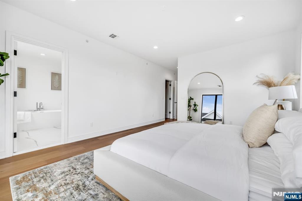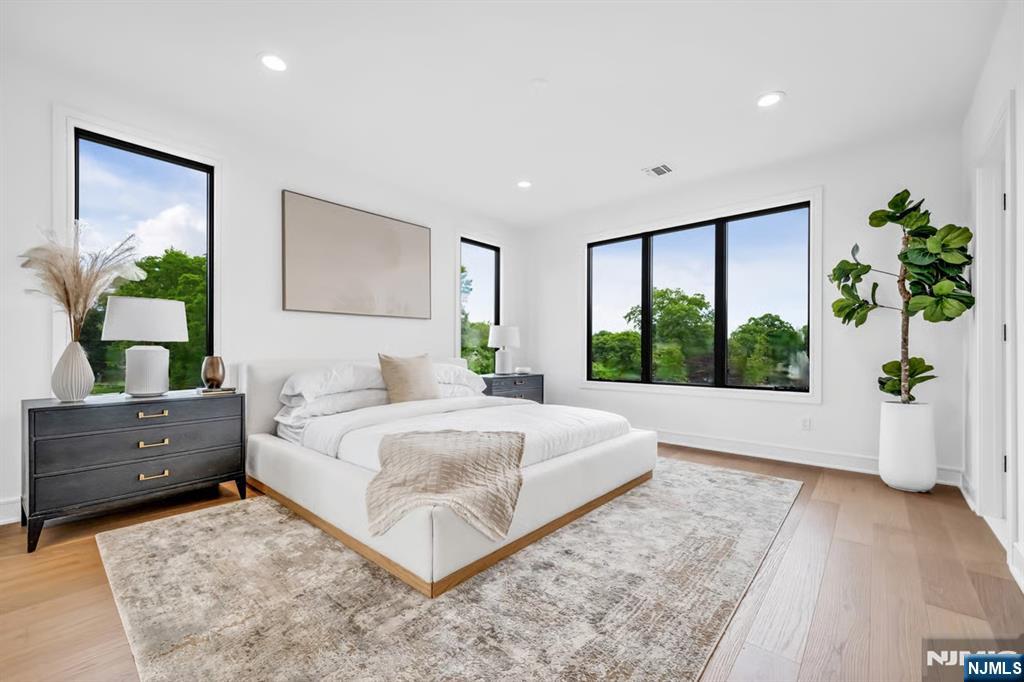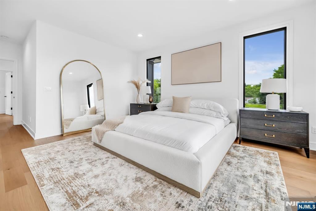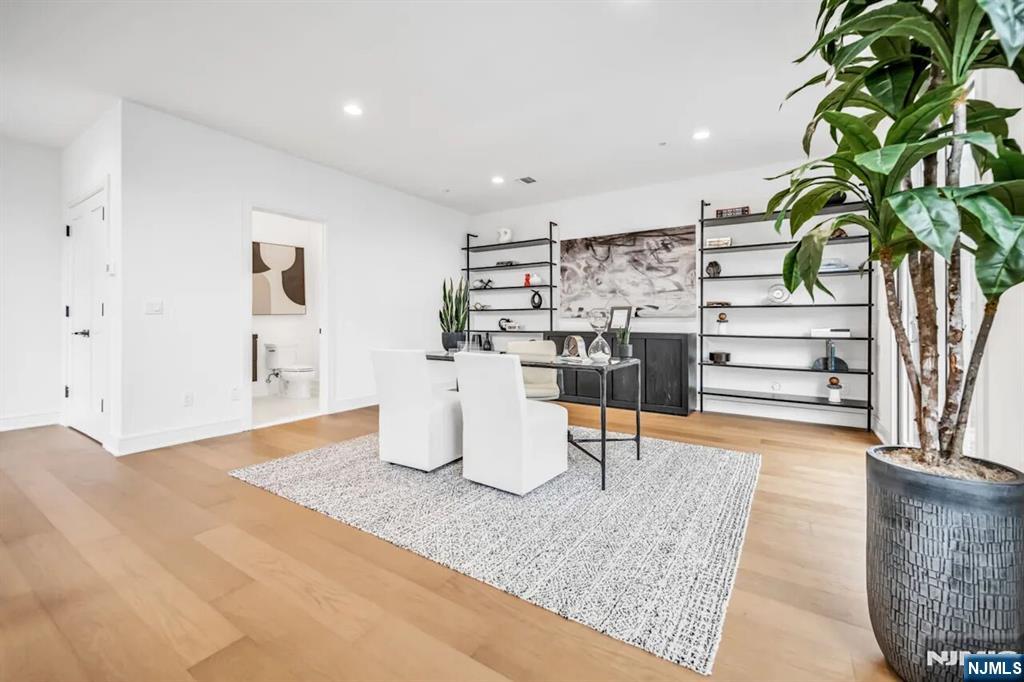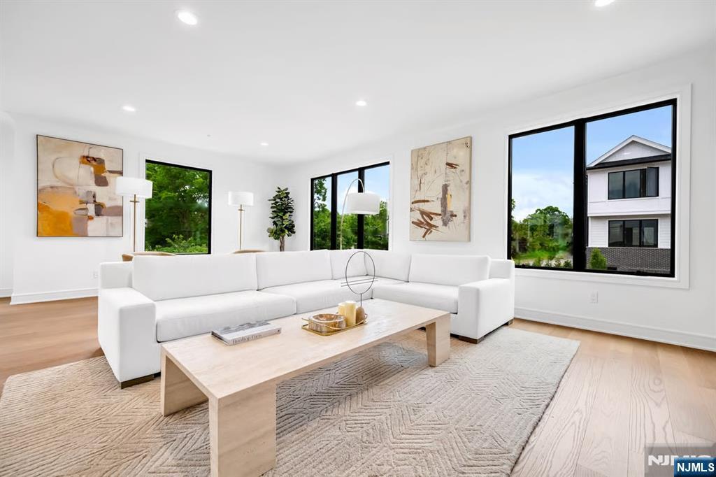SKYE DRIVE ESTATES: Experience unparalleled sophistication in this new luxury home. This premier corner unit is tucked at the quiet rear of the community with NO REAR NEIGHBORS, offering a private and coveted location. | LIGHT-FILLED & SPACIOUS DESIGN: 3,361 SF under A/C & Heat of above-ground living. Large windows facing East and West ensure your Master Suite is flooded with morning light, while the open-concept main level glows in the morning and afternoon sun. High 9.5’ ceilings on all 3 levels with large windows allow light to come into the home during the day while window treatments with blackout curtains maintain privacy at night. | LEVEL 1: REC ROOM & OFFICE- Opens directly to a private backyard patio overlooking a serene tree line and bamboo forest. - STATE OF THE ART INDOOR GOLF STUDIO: Powered by Foresight GC Quad launch monitor, a 16-foot wide 4K impact screen, and 20’x20’ premium grass turf. | LEVEL 2: GOURMET ENTERTAINING- 44x28ft open floor plan with a 10ft quartz waterfall island, Sub-Zero/Wolf appliances, and gas fireplace with custom built-ins. | LEVEL 3: Master Suite with spa-like bath and massive walk-in closet. Two additional bedrooms, full bath, and laundry complete the top floor. | SMART HOME: Wired/Wireless internet on all 3 floors; Control 50+ lights via smartphone app and voice control; Level 2 EV charger. | LOW TAX RATE: 1.41% - HOA: $385/m. - Home Insurance: $154/y. | LOCATION: Steps to Van Saun Park. |