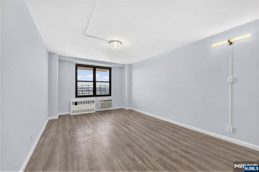 Welcome to Residence 8J, a spacious and well-maintained 1-bedroom + den, 1-bath condo on the 8th floor of a sought-after full-service building in Journal Square. Offering approximately 958 sq ft, this bright home features oversized windows, an open layout, and a private balcony with open sky views—perfect for relaxing or entertaining. The updated kitchen includes stainless steel appliances, a smart refrigerator, and ample cabinetry. Just beyond, three walk-in storage closets provide exceptional space rarely found in condo living. A dedicated home office nook is wired for Verizon Fios, ideal for remote work. The flexible layout allows the den to be used as an office, guest space, or additional living area. The updated bathroom offers a clean, modern finish. Heat and hot water are included in the HOA, adding value and convenience. Residents enjoy full-service amenities including a 24-hour concierge, fitness center, pool, on-site laundry, and optional parking for $110/month. Located just moments from the Journal Square PATH, this home offers easy access to Manhattan and is surrounded by dining, shopping, and neighborhood favorites. Residence 8J is a rare opportunity to enjoy space, comfort, and convenience in a prime Jersey City location.