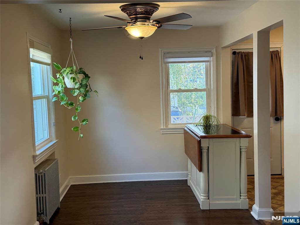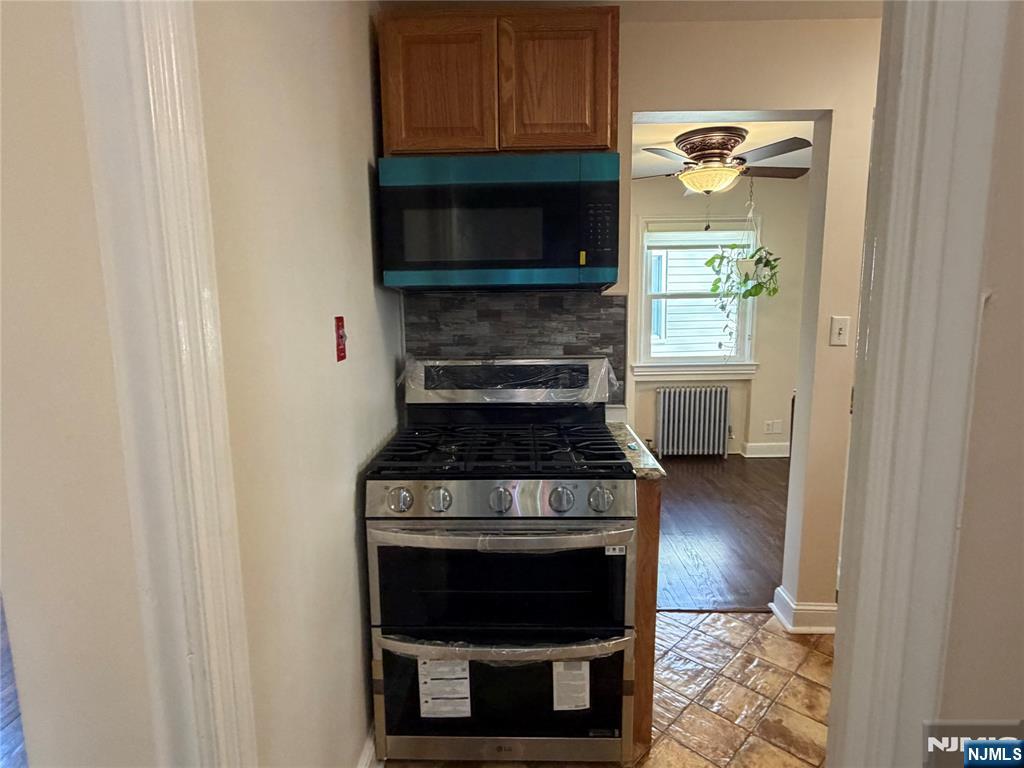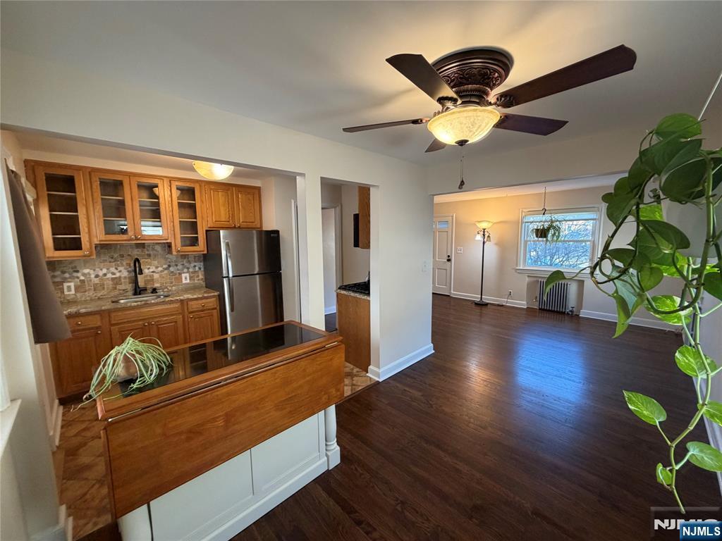 Welcome to this cozy first-floor unit in a well-maintained two-family home! Features include 2 bedrooms, 1 full bath, living room, dining area, and a kitchen with refrigerator. Enjoy steam heat and a split-system AC for year-round comfort. In-unit washer/dryer, basement storage, and a detached single-car garage included. Share access to a private backyard. Perfectly located near NJ Transit (bus and train), shopping, and restaurants. Move-in readyâ€â€don’t miss it!