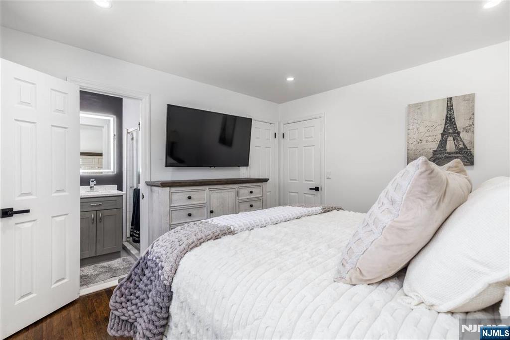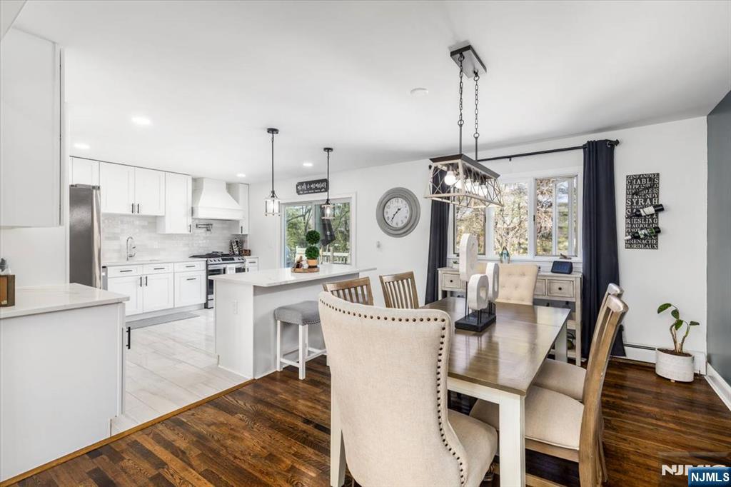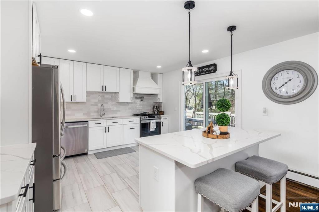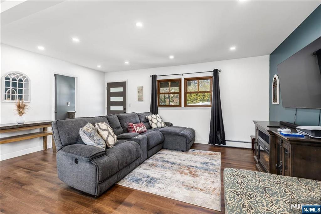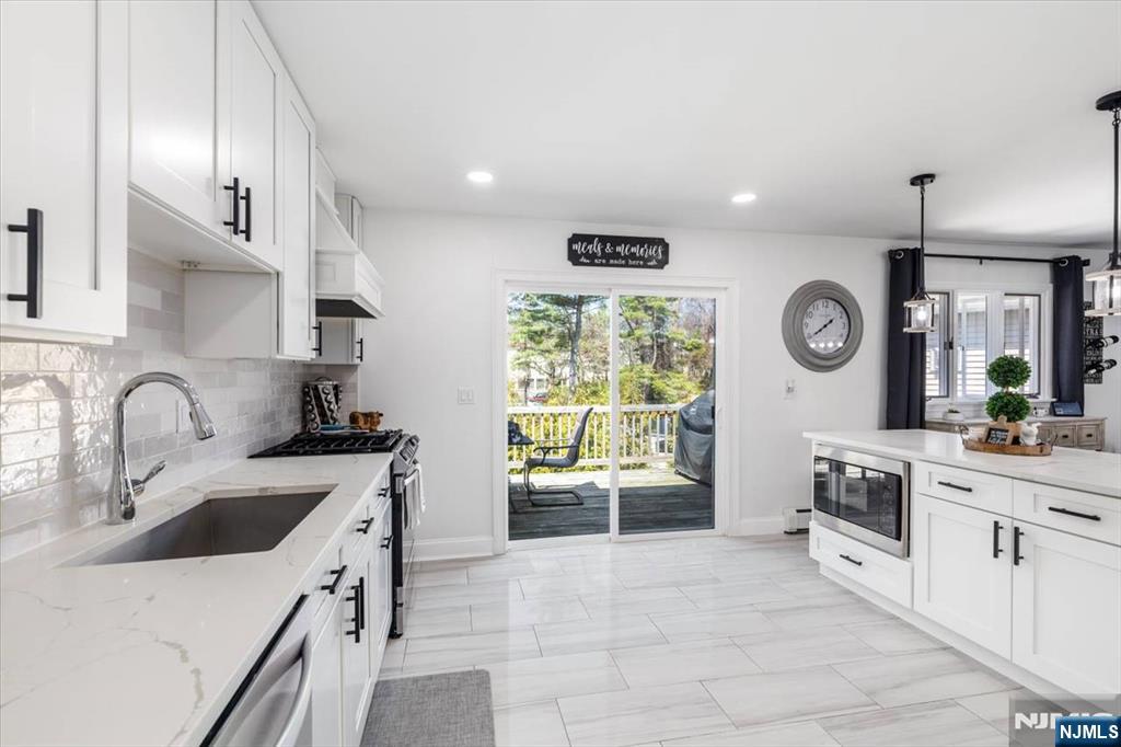 Nothing to do but unpack your bags and move in! Totally renovated bi-level in Totowa. First level features 3 good sized bedrooms, updated eat-in kitchen w/ breakfast bar, quartz counters, tile back splash, stainless steel appliances & beautiful ceramic tile floors. Living Room w/recessed lighting and new bay window, Formal Dining Room with w/sliders to deck, Hardwood floors throughout, Pull Down attic with steps, Primary Bedroom w/primary bath, which offers double vanity &separate stall shower. Ground floor, which walks out to patio offers large family room, vinyl laminate floors, an office, bar, laundry area and full bath. Nice sized private backyard with vinyl privacy fence. 1 Car Garage, parking for up to 4 cars in driveway. new windows(except for DR), newer roof, new front steps. 200 amps electric. Close to major highways, shopping and transportation. Your search ends here. Absolute mint condition! Refrigerator in kitchen not included. Refrig on lower level will stay