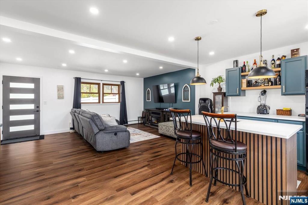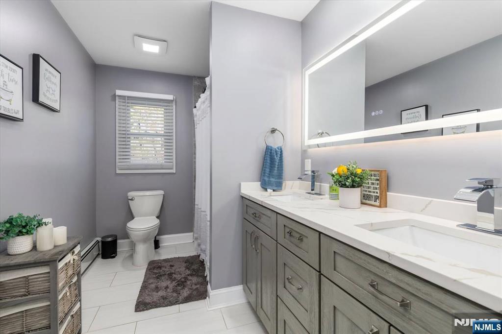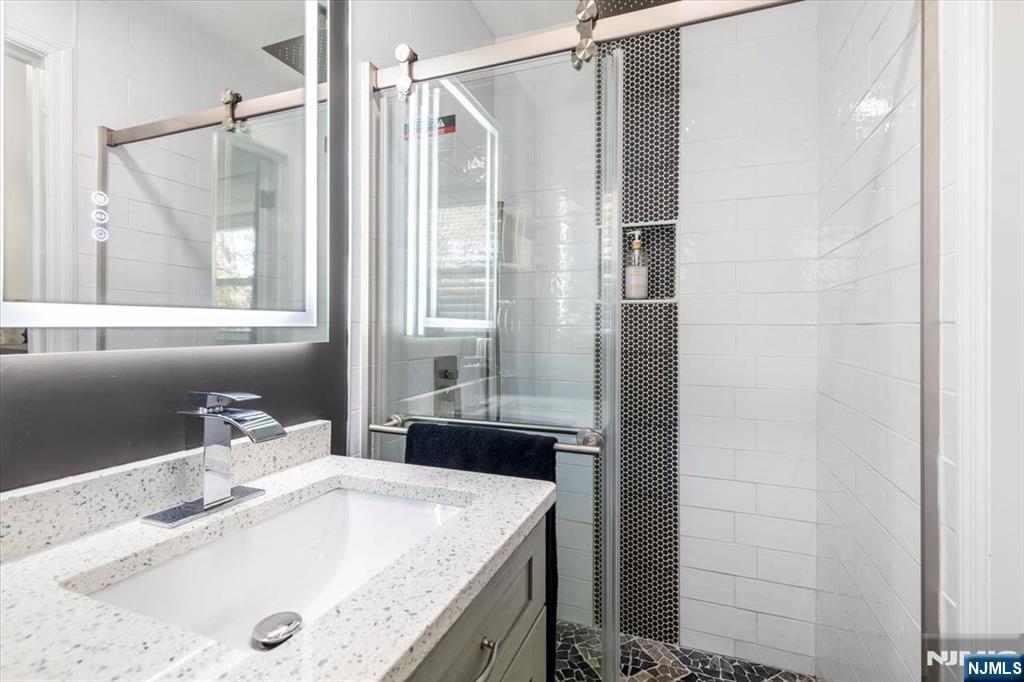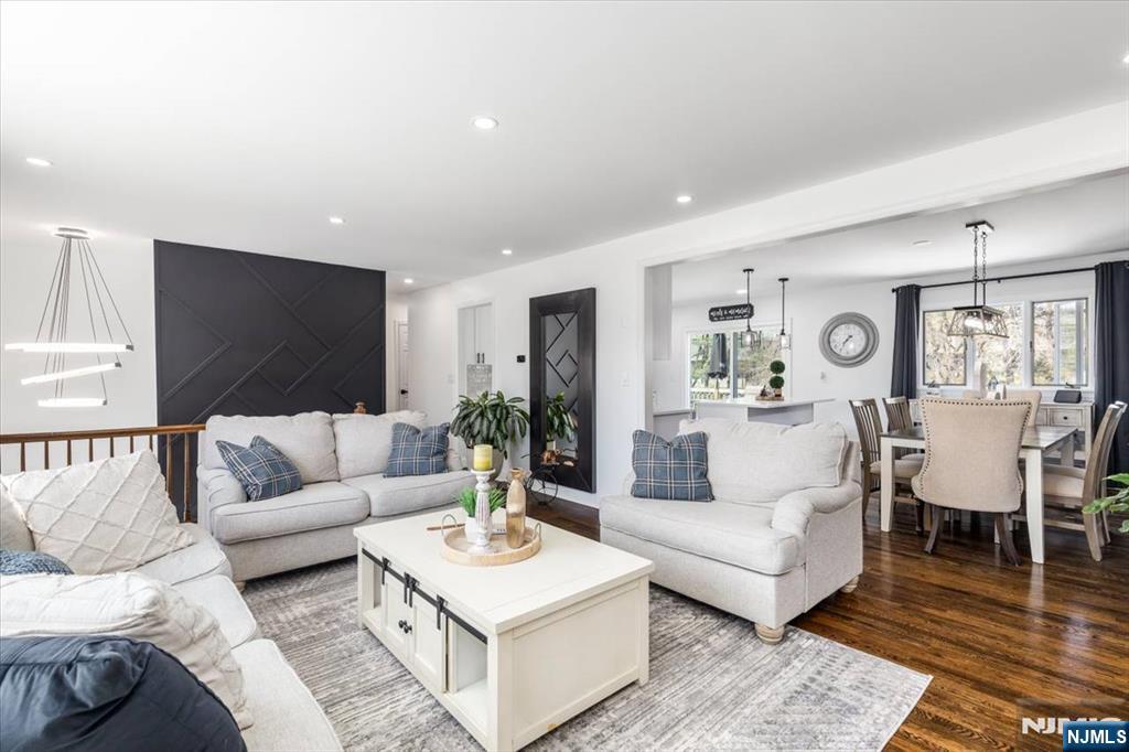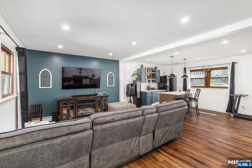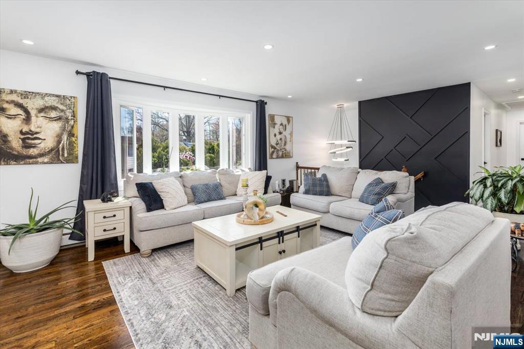 Nothing to do but unpack your bags and move in! Totally renovated bi-level in Totowa. First level features 3 good sized bedrooms, updated eat-in kitchen w/ breakfast bar, quartz counters, tile back splash, stainless steel appliances & beautiful ceramic tile floors. Living Room w/recessed lighting and new bay window, Formal Dining Room with w/sliders to deck, Hardwood floors throughout, Pull Down attic with steps, Primary Bedroom w/primary bath, which offers double vanity &separate stall shower. Ground floor, which walks out to patio offers large family room, vinyl laminate floors, an office, bar, laundry area and full bath. Nice sized private backyard with vinyl privacy fence. 1 Car Garage, parking for up to 4 cars in driveway. new windows(except for DR), newer roof, new front steps. 200 amps electric. Close to major highways, shopping and transportation. Your search ends here. Absolute mint condition! Refrigerator in kitchen not included. Refrig on lower level will stay