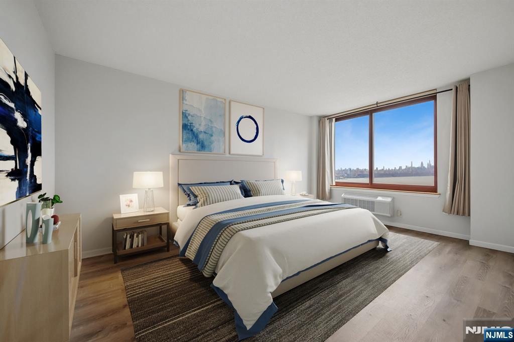 Welcome Home! This south facing 22nd-floor residence offers breathtaking, unobstructed views of the Hudson River and the iconic New York City skyline from every room. This rare 1 bedroom, 1.5 bath unit has been recently renovated and offers the ideal blend of luxury and convenience. Step inside to discover a modern, open living room with an abundance of natural light. The sleek kitchen is outfitted with stainless steel appliances and ample cabinetry. The spacious bedroom provides comfort, and is complemented by a half bath. This condo contains new 2026 air & heating systems along with a new in-unit washer & dryer. Enjoy luxury amenities including a covered garage parking spot, 24-hour doorman, outdoor pool, modern fitness center, children’s playroom, library and valet parking. This location is a commuters delight and is close to NYC transportation, schools, shops and parks.