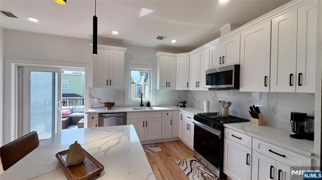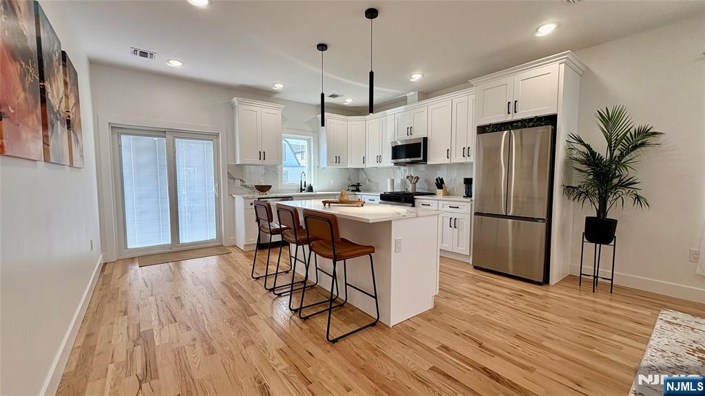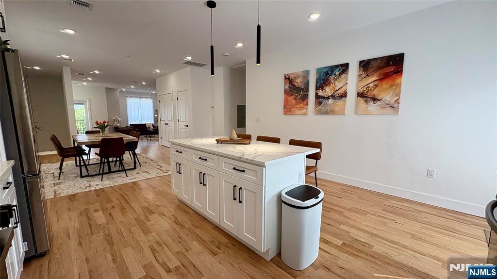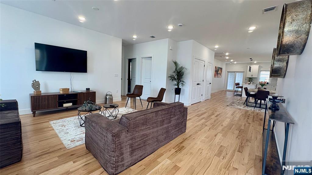 Experience modern luxury in this newly constructed 2nd-floor unit featuring 3 bedrooms and 2 bathrooms, with an open-concept design that integrates a spacious living room, dining area, and kitchen, complete with quartz countertops, a tiled backsplash, stainless steel appliances, and sliding doors leading to a private deck perfect for entertaining. Hardwood floors run throughout, and the primary suite includes 2 large closets and an en-suite bath. Washer and Dryer in the unit. Pets conditional. Enjoy the convenience of a one-car parking space in the driveway. HVAC with gas, heat, and central air. Located just 2 blocks to the NYC bus and a short walk to the PATH bus stop, commuting is easy. Close to shops and restaurants. Enjoy your refined living at its finest in this meticulously designed apartment. Tenant is responsible for supplying their own heat, gas, and electricity. No smoking of any kind allowed in the unit or on the premises. Landlord requires a rental application, a satisfactory credit report, and proof of ability to pay. Landlord holds a NJ real estate license.