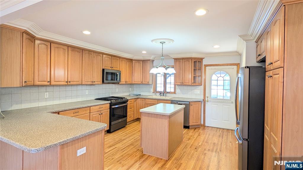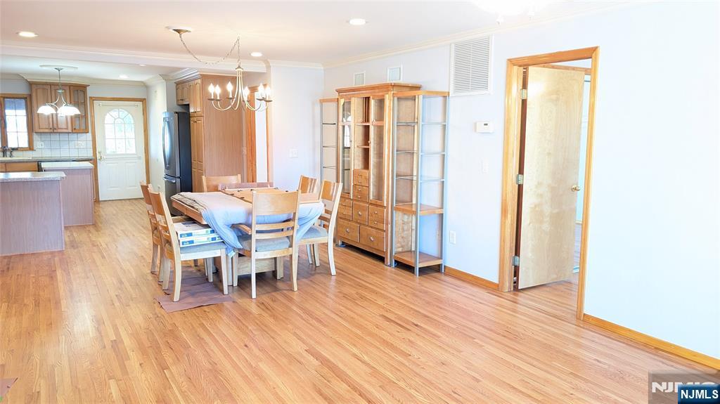 Discover the the perfect blend of space, modern living and suburban convenience in this expansive two-level residence! The first floor consists of a massive sun-filled living room, modern kitchen with a center island and breakfast bar, plus a separate dining area. Huge primary bedroom, with full bath, walk-in-closet with custom built ins, 2nd large bedroom with double custom closets, additional full bath and access to a gorgeous covered rear deck complete the 1st floor. Spacious full finished basement including a family room with gas fireplace, recreation room with custom bar, tons of storage, laundry hookups and access to rear yard. Recently painted, refinished hardwood floors, central air and forced hot air heat. Exclusive driveway parking for 3 cars and use of full yard. Landlord requires rental application, credit check (credit in good standing is required with minimum 720 credit score), and proof of ability to pay rent. 1.5 months security deposit. Tenant pays there own utilities. NJ Transit Bus #160 to NYC within walking distance. Steps from Wallington County Park offering walking paths, tennis, pickleball and basketball courts, shopping, schools and more!!