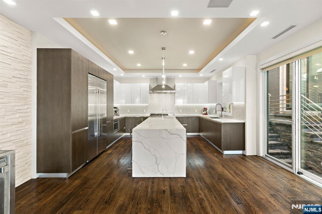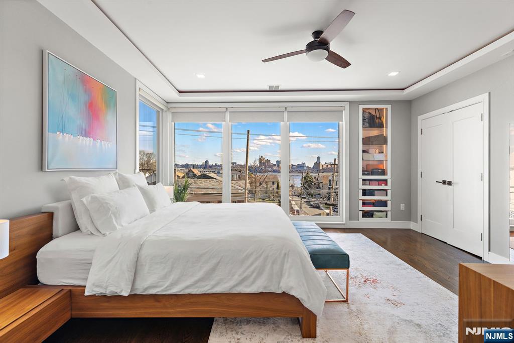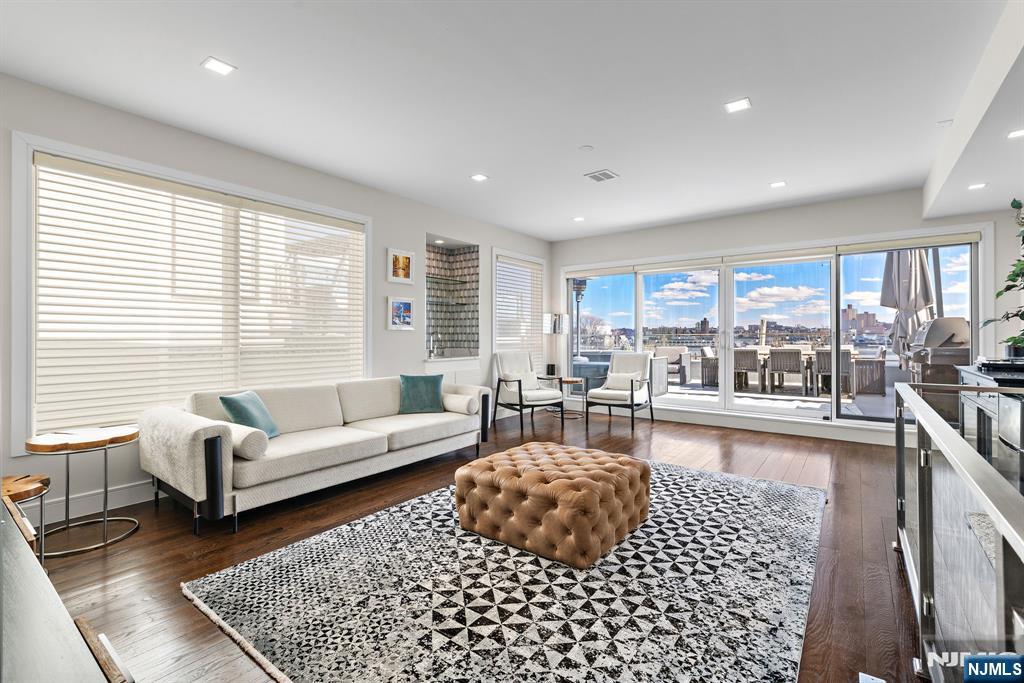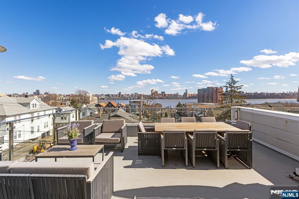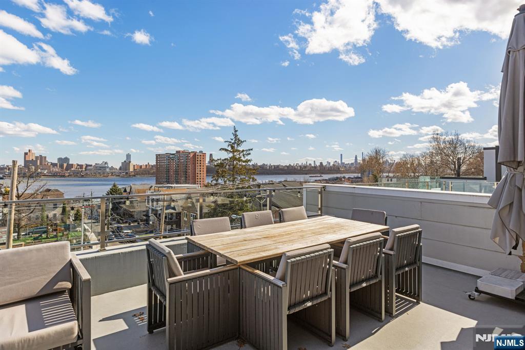 Welcome to 504 Undercliff Avenue, a modern townhouse offering expansive living, refined finishes, and sweeping Hudson River views. This four-bedroom home with four full bathrooms and one half bath spans four levels and includes a two-car garage and driveway. Floor-to-ceiling windows fill the home with natural light, while wide-plank hardwood floors add warmth and continuity throughout. The main level features an open-concept layout designed for everyday living and entertaining. A chef’s kitchen with premium appliances, including a gas range with professional hood, refrigerator, microwave, dishwasher, and wine refrigerator, flows seamlessly into the dining and living areas, along with a powder room. The second floor offers a spacious primary suite with walk-in closet and a spa-inspired bath with soaking tub, double vanity, and rainhead shower. Two additional bedrooms and a full jack-and-jill bath complete this level. The top floor includes a family room with wet bar, a fourth bedroom, full bath, and access to a private rooftop terrace with Hudson River views. The ground level features a family room, full bath, and garage access. Additional highlights include pre-wiring for whole-house audio and multiple indoor and outdoor entertaining spaces. Ideally located near the Hudson River waterfront, parks, dining, shopping, Whole Foods, Trader Joe’s, and transportation options to Manhattanâ€â€truly a commuter’s dream.