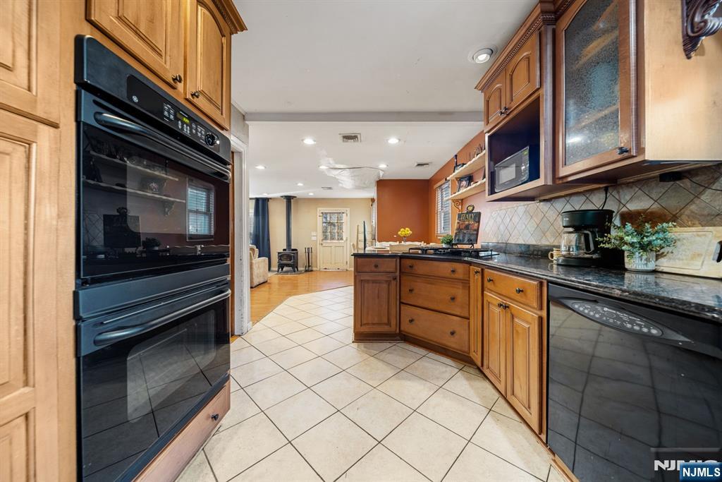 This classic Colonial offers over 2,600 sq ft across three full levels in a prime Midland Park location, highlighted by rich chestnut woodwork, oversized rooms, and a BRAND NEW ROOF, that offers immediate value. The main level features a spacious living room with a wood-burning fireplace, heated sunroom/office, banquet-sized dining room, eat-in kitchen with granite countertops and newer appliances, and a family room with a free-standing wood stove. Upstairs includes three bedroomsâ€â€one currently used as a walk-in closetâ€â€and a full bath fully demoed to the studs, ready for your custom finish. The third level adds a fourth bedroom and additional storage. A full walkout basement, deep backyard, and detached two-car garage complete the home. Close to schools, parks, and NJ Transit (bus/train), this is a rare opportunity offering space, character, and value.