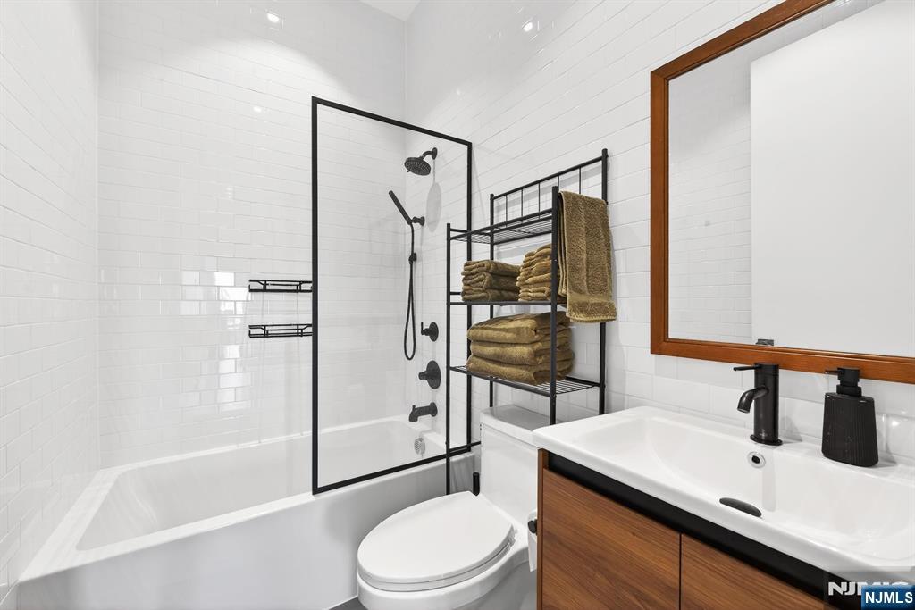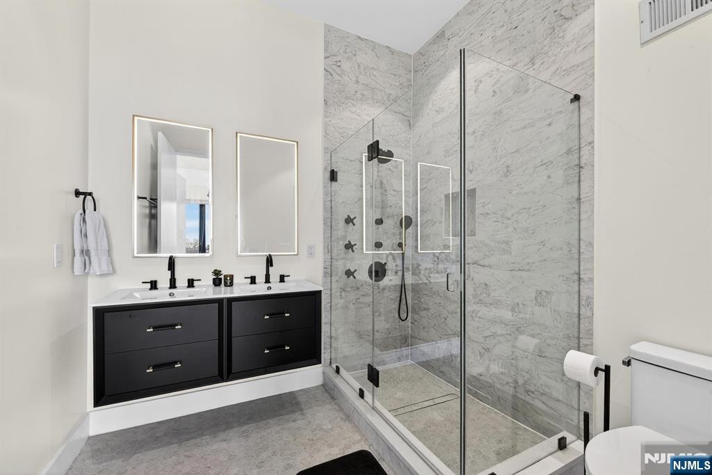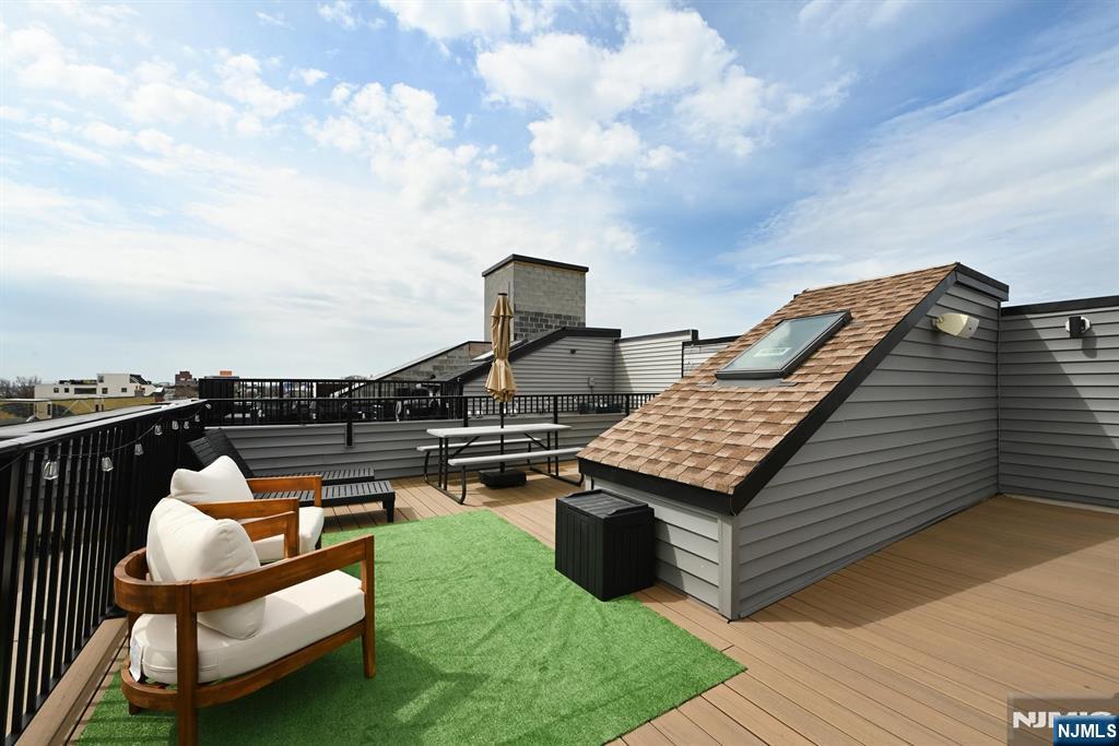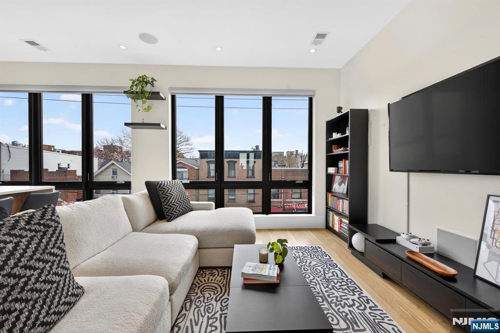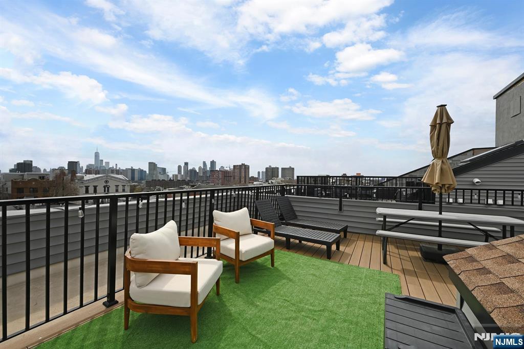 Perched in the heart of Jersey City Heights, 339 Palisade Ave #3 is a stunning 3-bed, 3-bath duplex blending modern design with everyday comfort. Soaring 10-ft ceilings and floor-to-ceiling windows fill the home with natural light, while the open-concept main level features in-wall speakers and custom roller shadesâ€â€perfect for both entertaining and relaxing. The chef’s kitchen shines with Bertazzoni stainless steel appliances, two-tone cabinetry with glass accents, and sleek white quartz countertops with a waterfall island. This level also includes a spacious bedroom, full bath, and a conveniently located LG washer/dryer. Upstairs, the private primary suite offers a custom walk-in closet and spa-like ensuite with dual vanity, glass shower, and heated, lit mirrors. A third bedroom with custom closets, another full bath, and a second private entrance add flexibility. Enjoy a private rooftop with breathtaking NYC skyline views, pre-wired for soundâ€â€ideal for entertaining or unwinding. Additional basement storage included. Nearby parking available for a fee.