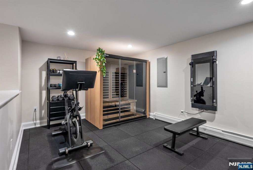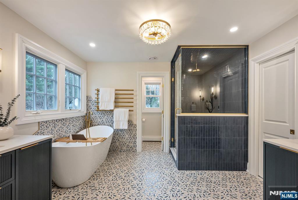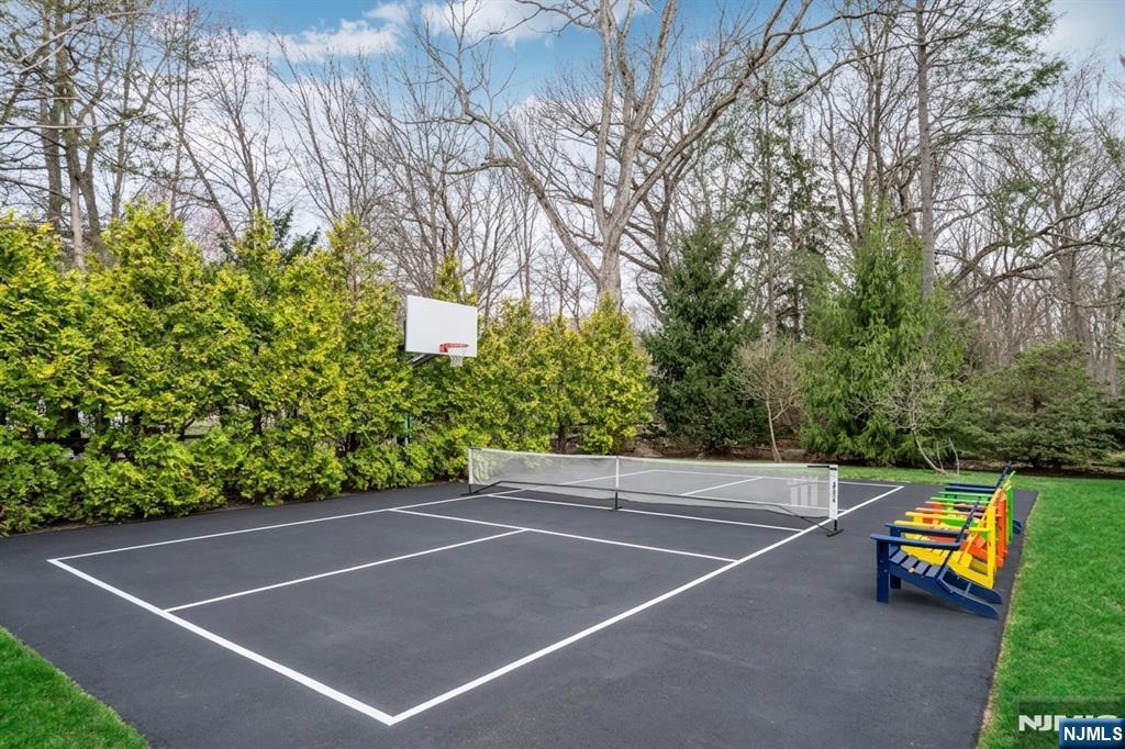 Originally built in 1826 and masterfully expanded and renovated, this exceptional Ramsey estate blends timeless character with sought-after amenities on 1.2 private, resort-like acres. The home showcases restored barn wood flooring, custom millwork and cozy fireplaces, while modern enhancements include a chef's kitchen, radiant heat, smart home technology, a whole-house generator and solar panels. Designed for both elegant living and effortless entertaining, the seamless layout flows from sophisticated interior spaces to an extraordinary outdoor retreat featuring a heated saltwater pool, hot tub, sport court and beautifully landscaped grounds with bluestone walkways, a pergola and mature privacy plantings. The home offers five spacious bedrooms including a luxurious primary suite, multiple living areas, a sun-filled office and a finished lower level complete with a home theater, gym, and sauna -- creating a rare opportunity to own a one-of-a-kind residence that perfectly balances convenience with modern luxury. Ideally located in Ramsey, a highly sought-after Bergen County community known for its charming downtown, top-rated schools, vibrant dining scene and New York City commuter access, this home offers ultimate lifestyle.