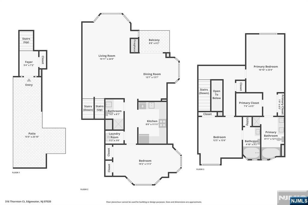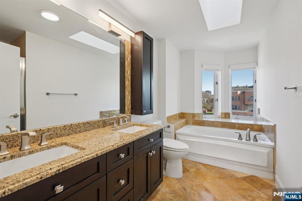 Presenting this rare 3-bedroom, 3-full bath townhouse (approx. 1,794 SF) in the highly desirable community of Independence Harbor. Cathedral ceilings with natural light throughout. Move-in ready, the interior boasts freshly painted walls and new hardwood floors. This open layout offers 2 en suite bedrooms and walk-in closet on the 3rd floor, and kitchen, bedroom, full bath, washer/dryer, dining/living rooms on 2nd floor. 2 outdoor spaces include a balcony terrace, and front patio with entrance. Mere steps away is a deeded outdoor parking space and covered space below. Amenities include 24-hour gated security, EV charging stations, swimming pool, tennis courts, clubhouse/gym, dog parks. Direct access to the scenic Hudson Riverfront Walkway connects you to shopping nearby (Mitsuwa, Edgewater Commons, Whole Foods, Trader Joe's). Easy commuting to NYC with bus service, shuttle to the ferry. Experience the perfect blend of comfort, convenience, and waterfront living in one of Edgewater’s most sought-after communities.