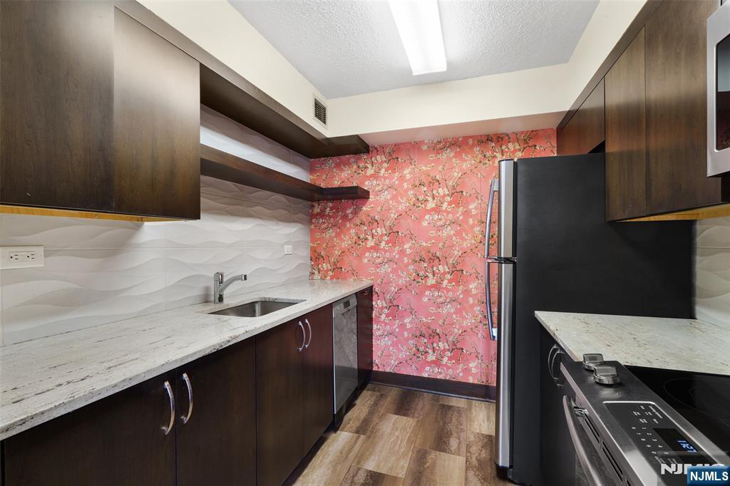 Showcasing sweeping river views from the 8th floor of The Mill, this updated residence offers elevated living with a bright, modern interior. New flooring runs throughout the home, and the renovated kitchen features stainless steel appliances, refreshed cabinetry, and a clean, contemporary design that opens seamlessly into the main living area. The living space extends to a private balcony, creating an inviting outdoor retreat and an ideal spot to enjoy the river setting. Large windows flood the home with natural light, enhancing the open and airy layout. The bedroom is generously sized and features two walk-in closets, offering exceptional storage rarely found in comparable units. Heat pumps provide efficient heating and cooling for year-round comfort and energy efficiency. Residents enjoy access to a full suite of amenities including a fitness center, community room, swimming pool, tennis courts, walking and jogging paths, and a plaza deck overlooking the waterfalls. Easy access to shopping, dining, and NYC transportation completes the offering.