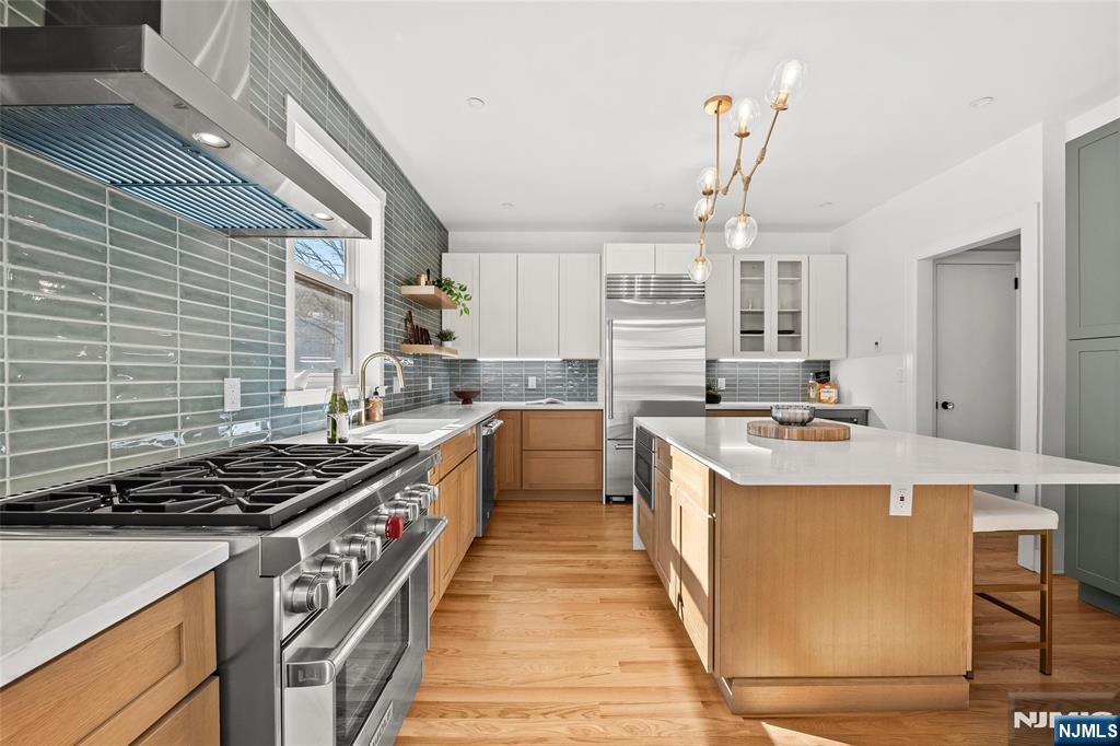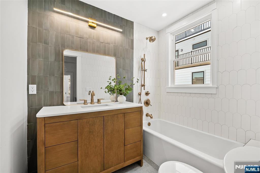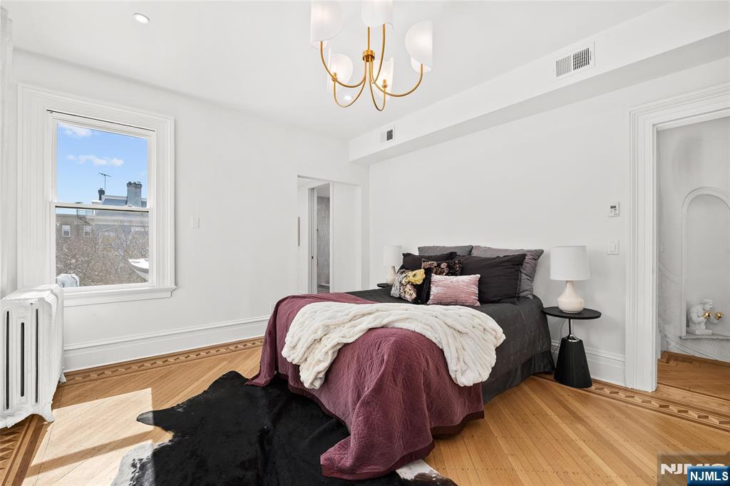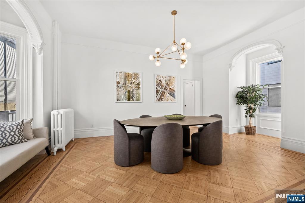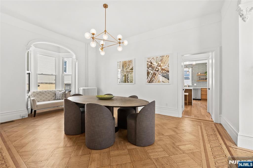 Experience the grandeur of this rare, newly renovated Queen Anne–style Victorian with porch, set on an oversized lot on one of Jersey City Heights’ most picturesque blocks. This expansive 7-bedroom, 4.5-bath pre-war home blends original charm with modern functionality, exceptional scale, and rare parking. Original hardwood doors and trim welcome you into a space filled with timeless detail, including refinished parquet inlay floors, crown molding, 11’ ceilings, and preserved pocket doors connecting the living and dining areas. The living room features a carved marble mantle, while oversized windows and a bay alcove flood the dining room with natural light. A Lincrusta chair rail enhances the historic appeal. The kitchen offers custom cabinetry, a Sub-Zero refrigerator, 6-burner Wolf stove, vented hood, Sharp microwave, Viking dishwasher, and wine fridge, plus an adjacent sunroom. The second level includes a spacious primary suite with ample closets and a spa-like en-suite bath with double vanity, soaking tub, and glass shower, plus two bedrooms and a full bath. The third floor adds three bedrooms, a laundry room with LG washer/dryer, and a full bath with NYC skyline views. The finished ground floor offers a 1-bedroom, 1-bath suite with Bosch appliancesâ€â€ideal for guests or extended living. Outside, enjoy a landscaped yard, 2-car garage, and parking for 4–5 cars. Near Pershing Field, Central Ave, and NYC transitâ€â€this is a rare opportunity to own Jersey City history.