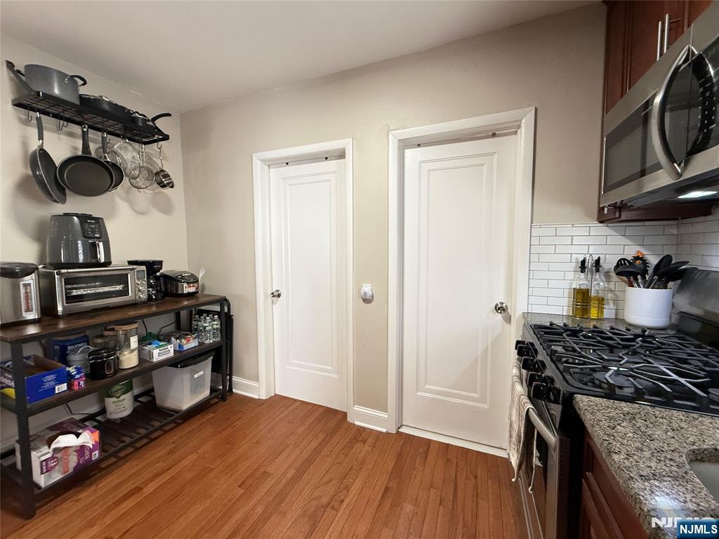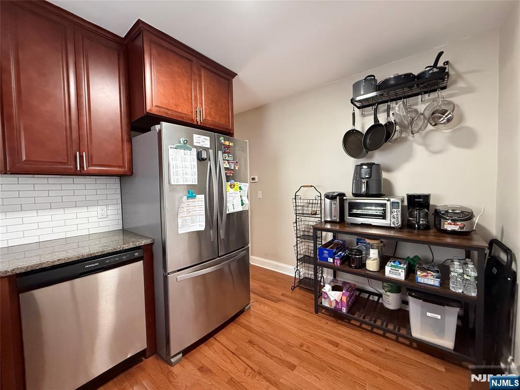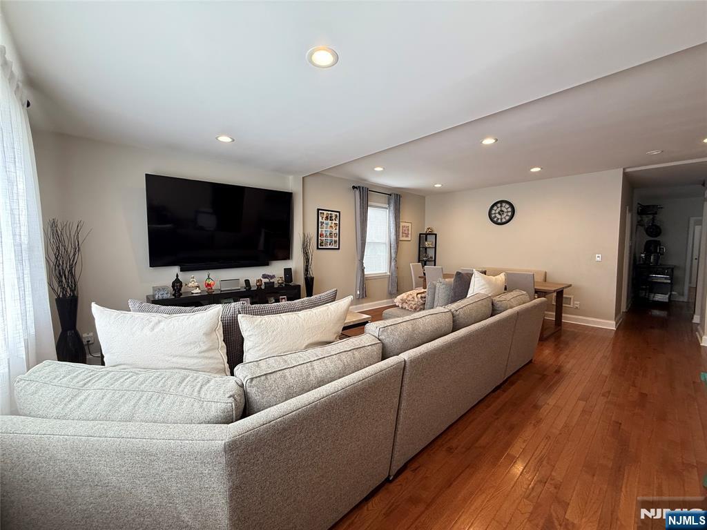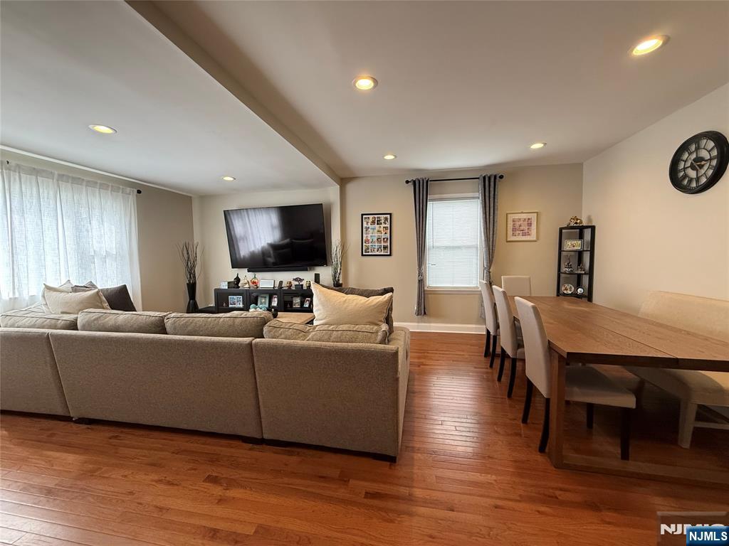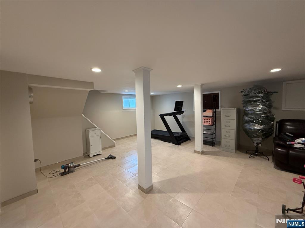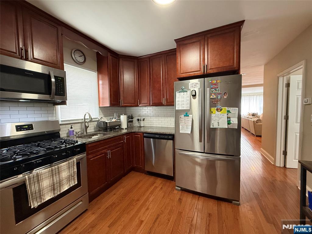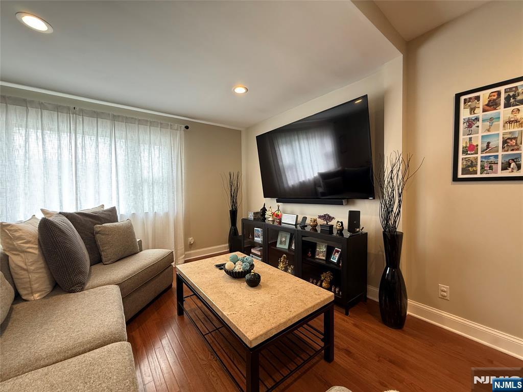 Beautiful 2-bedroom apartment on the first floor of a 2-family home. This spacious unit features a living and dining room combo, an updated bathroom, and a kitchen with granite countertops and stainless steel appliances, including an oven, fridge, dishwasher, and microwave. Hardwood floors run throughout, and both bedrooms offer ample closet space. The apartment also has a central heating and cooling system for year-round comfort. The finished basement includes an entertainment room and a laundry area. Parking includes one space in the garage and one in the driveway. Tenants have exclusive use of the backyard. All utilities are separate; the tenant pays for heat, hot water, and gas, while the landlord covers water. Snow removal and lawn care are handled by the landlord. Small pets may be considered with approval. Conveniently located within walking distance to schools and the bus stop on the Boulevard, providing easy access to New York City. Proof of employment and income, a credit check, and a 1.5-month security deposit are required.