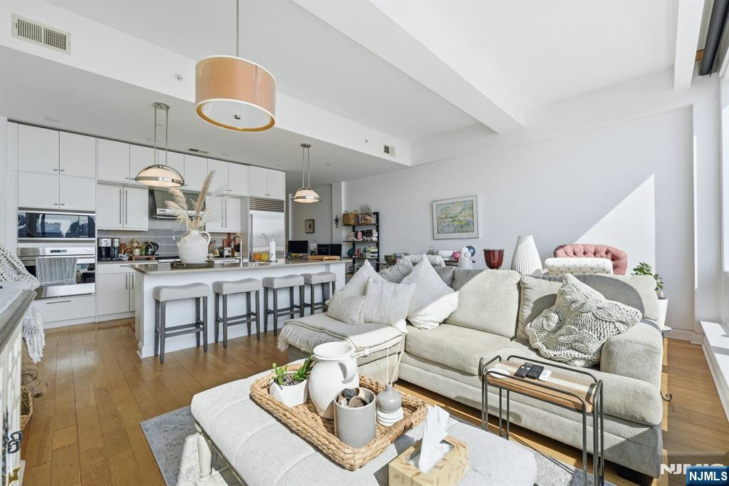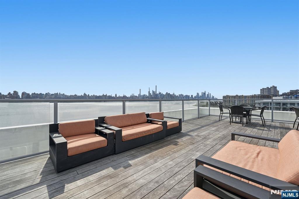 Welcome to The Pearlâ€â€one of Edgewater’s premier waterfront buildings. This loft-style 1-bedroom, 1-bath home offers panoramic eastern views of NYC and the Hudson River. Featuring 10-foot ceilings, 8-foot doors, and natural hardwood floors throughout, the home flows into a spacious open-concept living, dining, and kitchen area with floor-to-ceiling windows showcasing incredible natural light and skyline views. Custom built-in closets and a chef’s kitchen with top-of-the-line appliances make this home as functional as it is stylish. The bathroom features a sleek, spa-like design. Additional highlights include in-unit laundry and one assigned garage parking space. Full-service amenities include a 24-hour concierge, fitness center, outdoor heated pool, and roof deck. Conveniently located near restaurants, shopping, and everyday essentials including Whole Foods and Trader Joe’s.