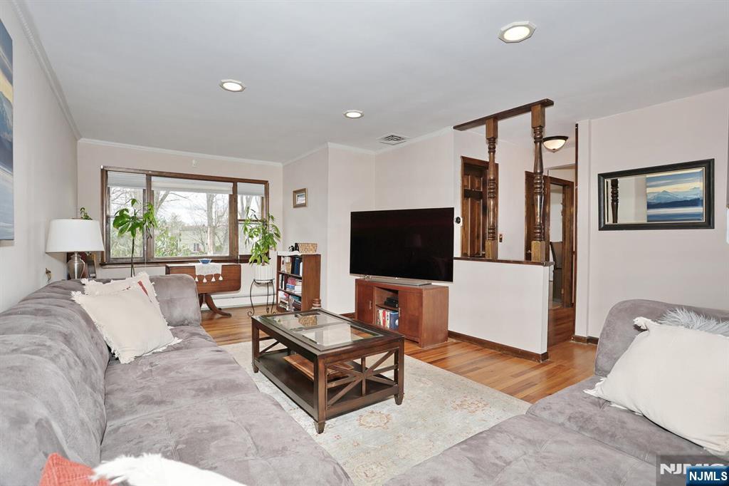 A true 4 bedroom center hall colonial! Approx. 2000 sq ft of living space plus a huge basement! Taxes $13,918. Entry foyer, unbelievably oversized living room, formal dining room, eat in kitchen with dishwasher opens to dining room, sliding glass doors to large deck, family room, full bath. Upstairs master bedroom with closets galore, 3 more good size bedrooms and 2nd full bath. Big basement with high ceilings has tremendous potential! One car garage with easy access to house, house faces east with lots of natural light, all spacious rooms, beautiful hardwood floors, private backyard almost 1/4 acre! Two zone gas heat, newer central air conditioning, newer roof, underground sprinklers. Walkable neighborhood. Terrific location, easy access to public transportation to NYC.