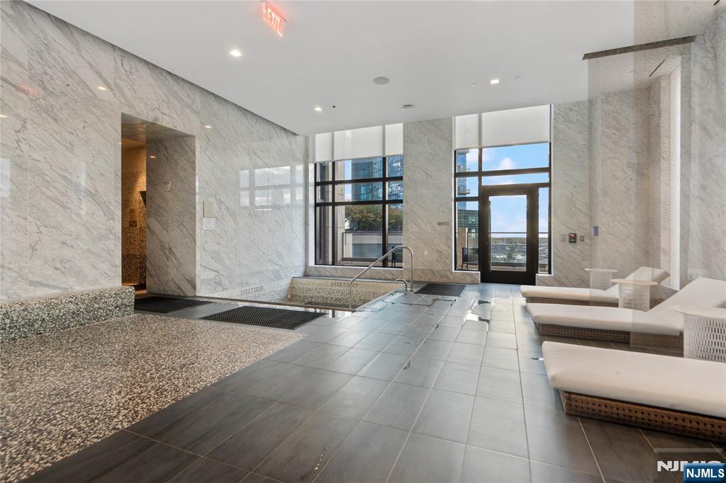 Luxury 26th-floor home at 99 Hudson. Floor-to-ceiling windows with stunning Jersey City views and river views, wide-plank oak floors, Bosch kitchen appliances, gas range with vented XO hood, white lacquer Italian cabinetry, and spa bath with quartz vanity and Kohler fixtures. In-unit laundry and high-efficiency systems. Resort-style living with 65,000 sq ft of amenities including outdoor heated pool, hot tub, sauna, steam room, fitness center, golf simulator, club & movie/game rooms, business center, grills, dog run, plus 24/7 concierge in a triple-height lobby. Steps to PATH & ferry for fast NYC access.