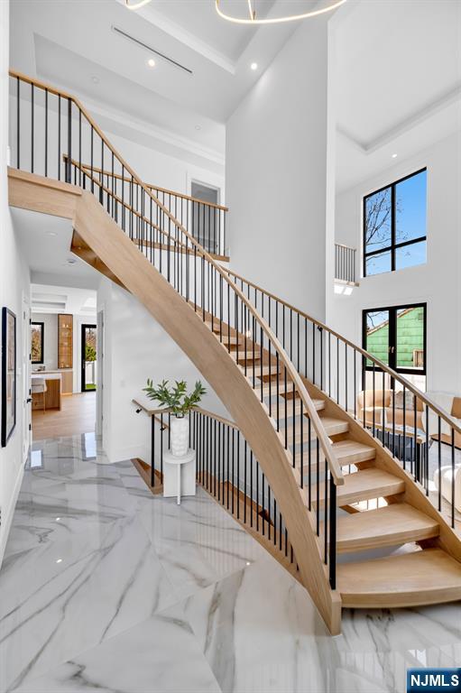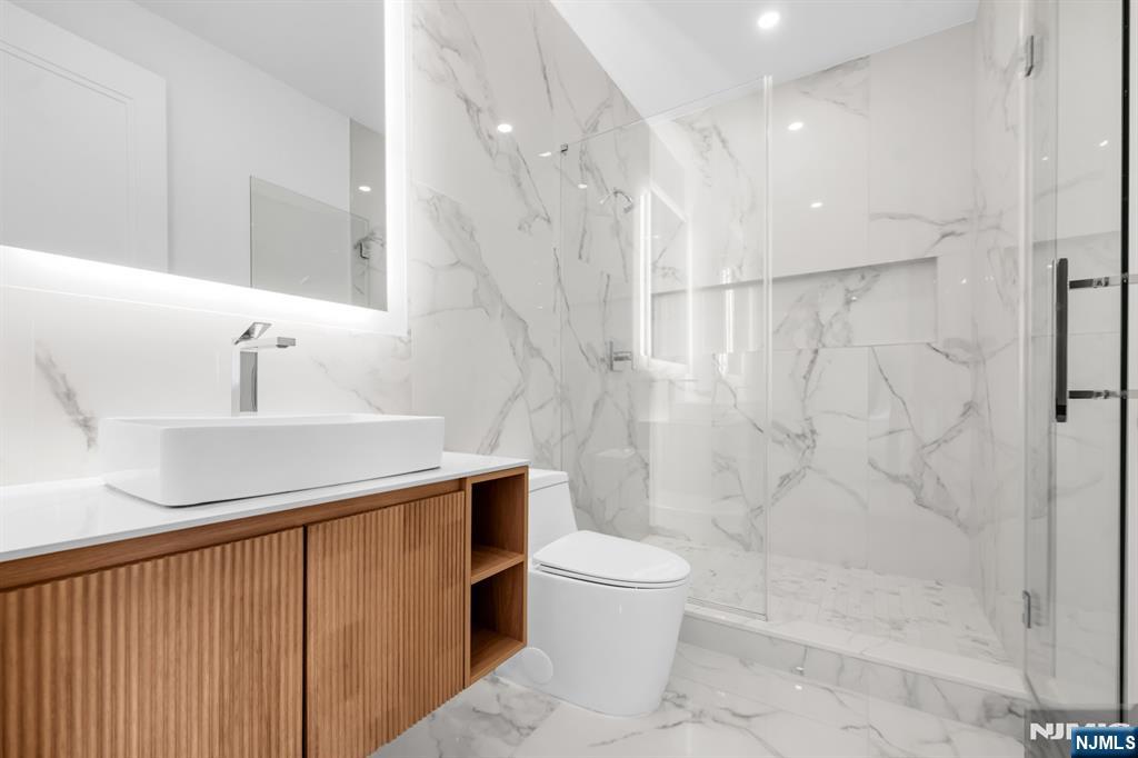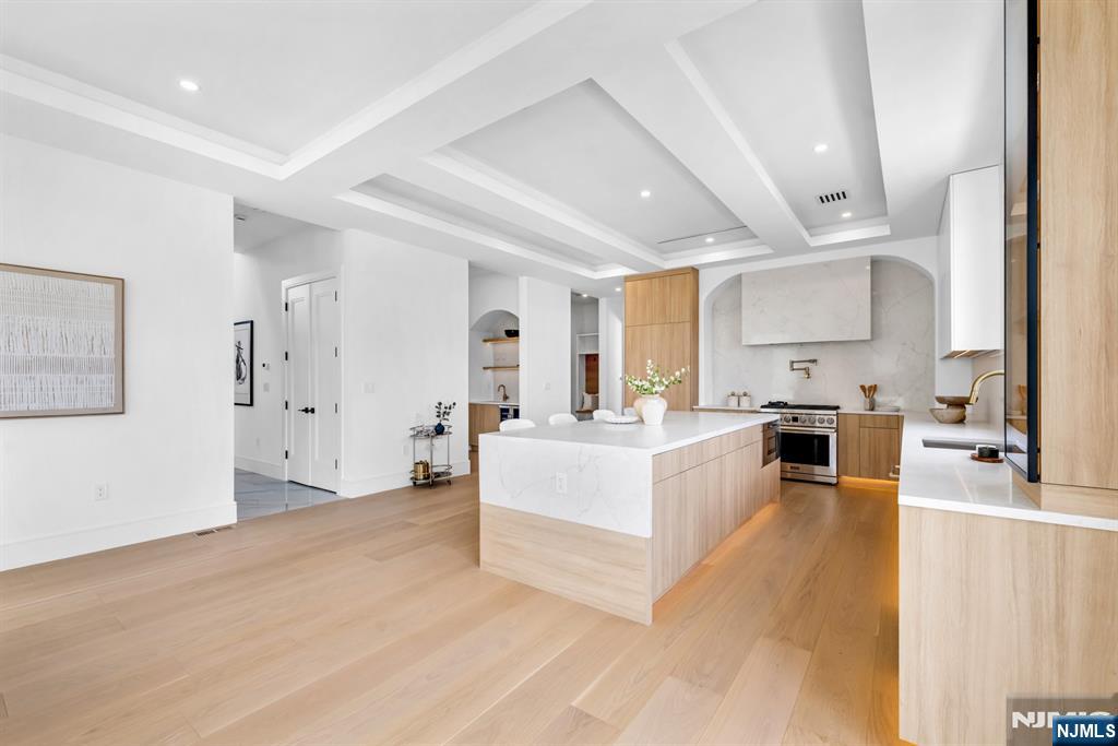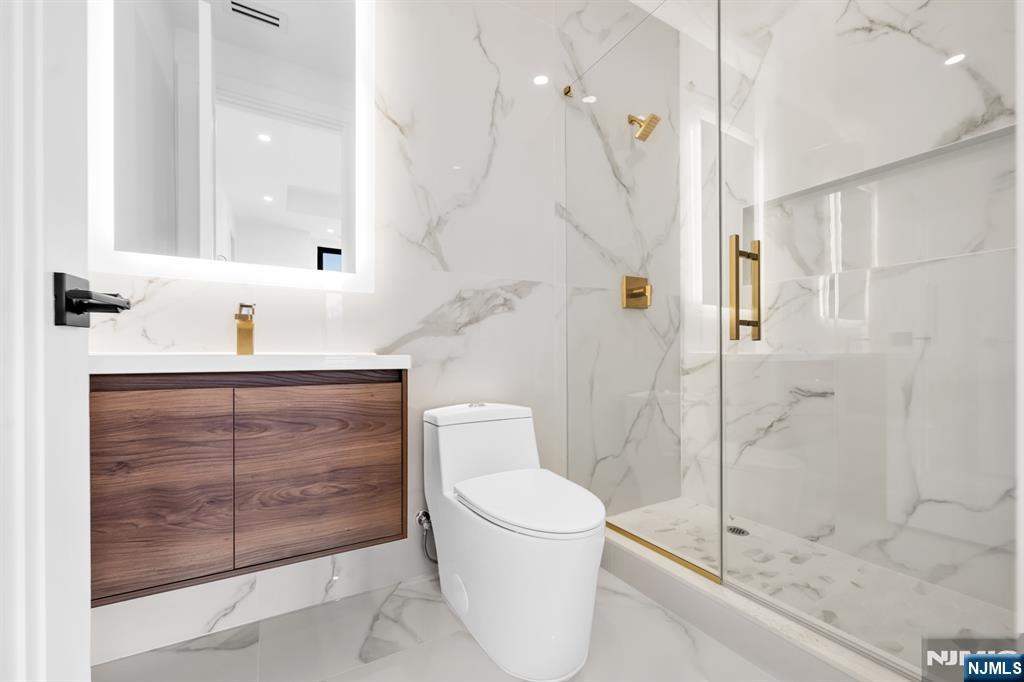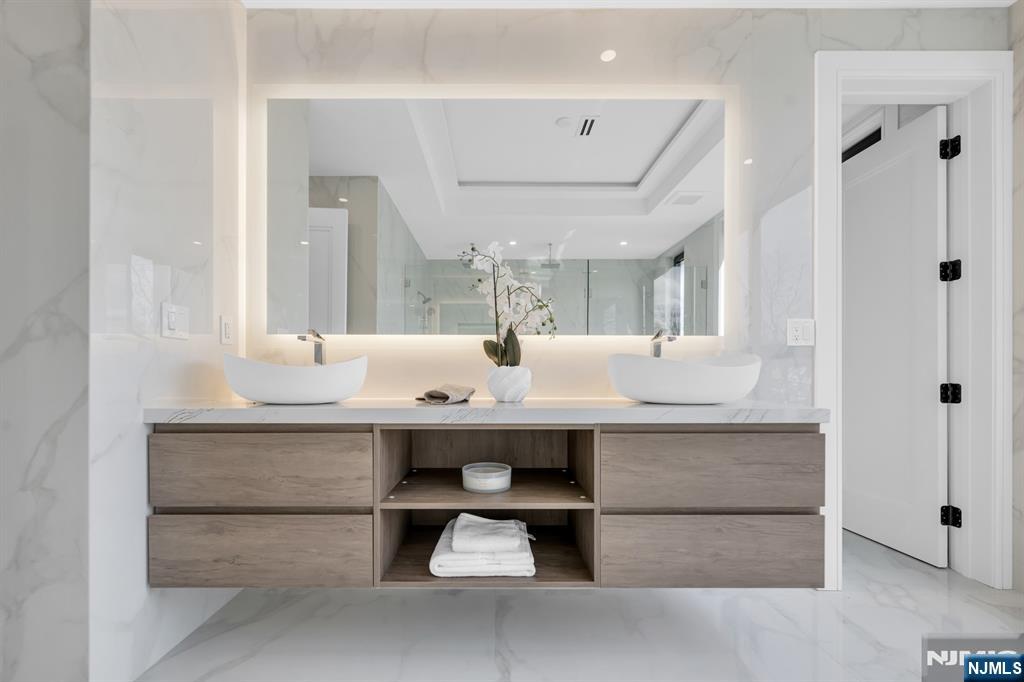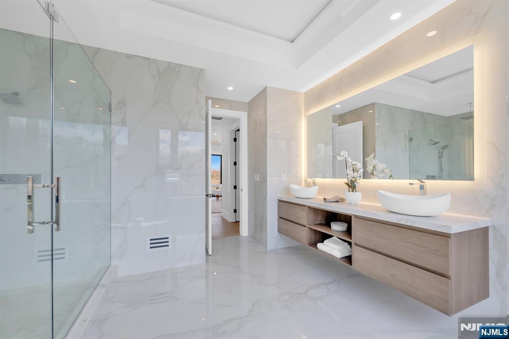 Absolutely stunning brand new construction masterpiece by one of Paramus’ premier builders, showcasing exquisite finishes and exceptional craftsmanship throughout. This classic center hall colonial offers 6 bedrooms and 6.5 bathrooms, highlighted by a dramatic double-height entrance foyer with a showstopping curved floating staircase that creates an unforgettable first impression. Formal living and dining rooms flank the foyer, while the stunning European-style kitchen with a huge center island opens seamlessly to the great room with fireplace, creating an ideal layout for everyday living and entertaining. Expansive windows throughout flood the home with natural light. A first-floor bedroom with full bath offers the perfect setup for guests or a home office. Upstairs, all bedrooms are en-suites, including a dreamy primary suite with two walk-in closets and a spa-like bath with soaking tub and oversized shower. Three additional junior suites and a convenient second-floor laundry complete the upper level. The fully finished basement is absolutely gorgeous, featuring a huge rec room, bar, movie theater, sixth bedroom, and full bath. Set on a large, flat, fully fenced backyard in the heart of Paramus’ desirable east side, close to shopping, schools, and everything the community has to offer.