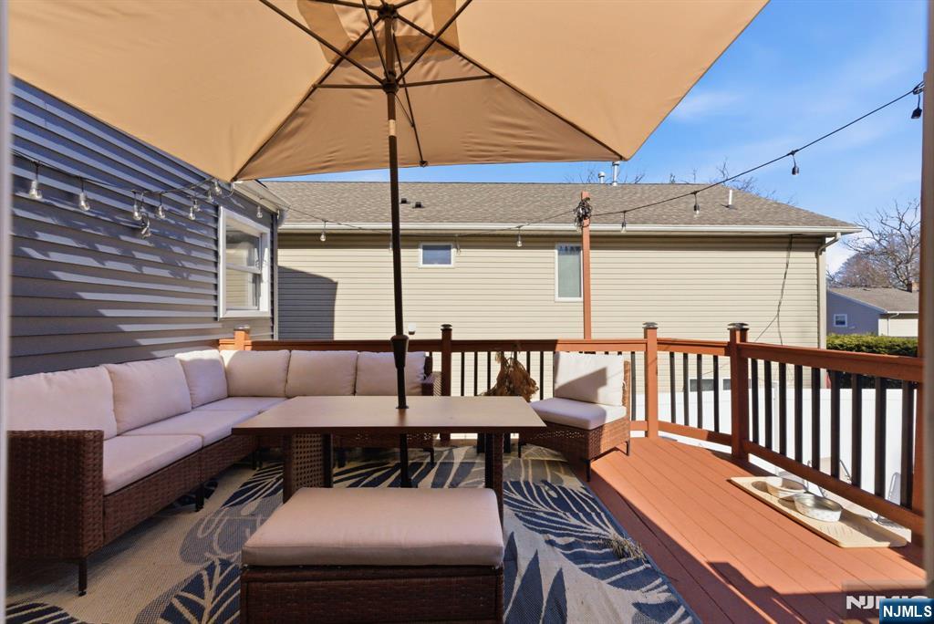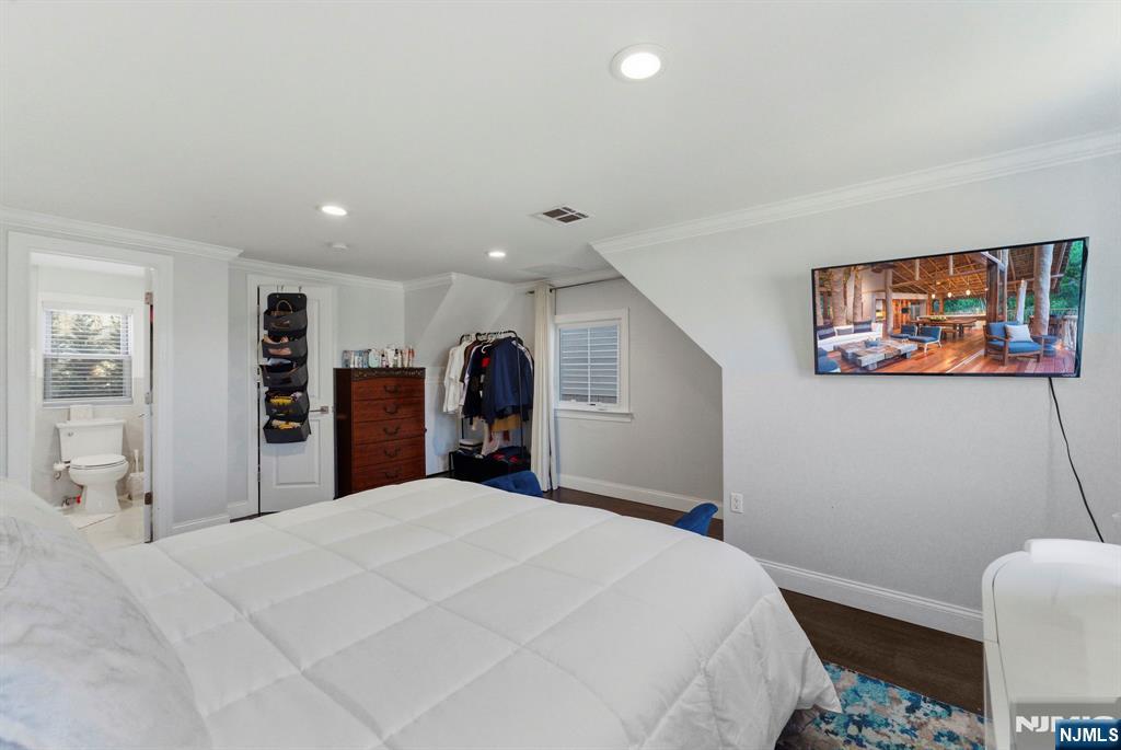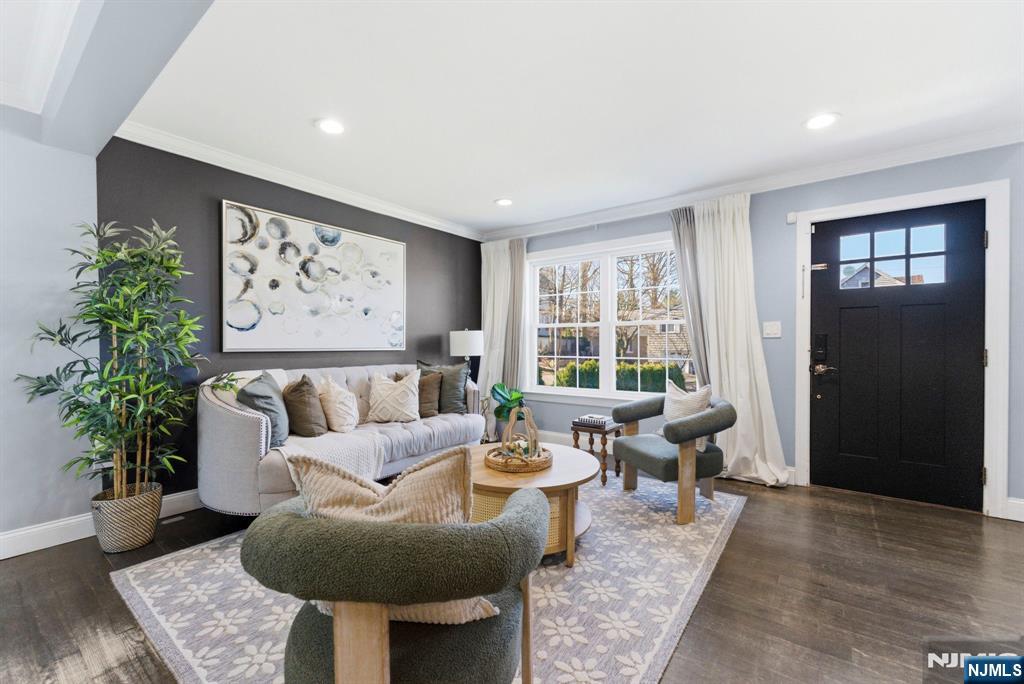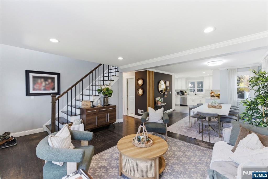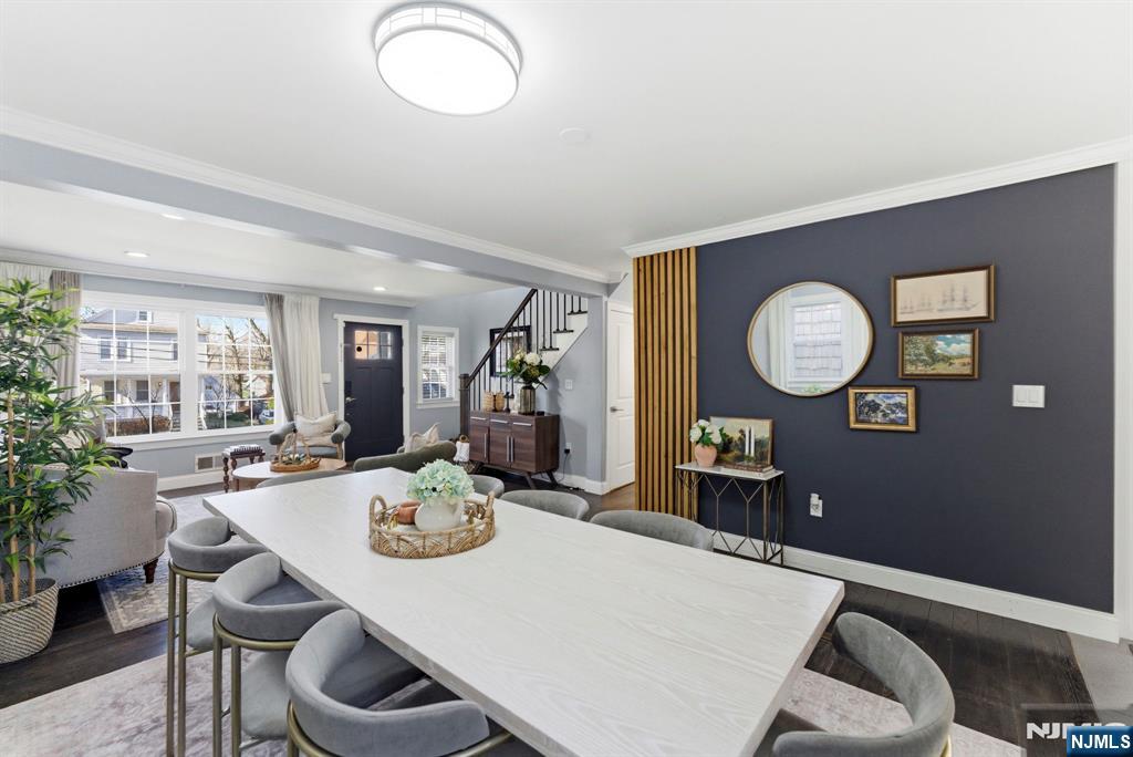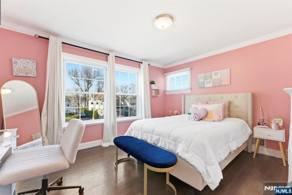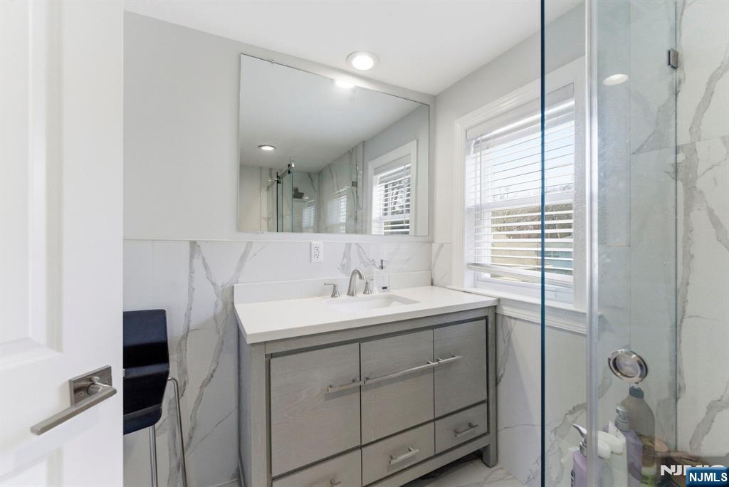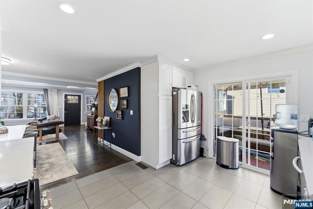 Beautifully reimagined Colonial, fully renovated top to bottom in 2019, blending timeless design with modern functionality. Featuring hardwood floors throughout, marble countertops, stainless steel appliances, and a seamless open concept living and dining space that feels both elevated and inviting. The main level offers two bedrooms and a full bathroom, providing flexibility for guests, a home office, or additional living space for in-laws. Upstairs, you’ll find two spacious bedrooms, each with its own en-suite bathroom and walk-in closet, creating a true private retreat. The finished basement adds additional living space with a recreation area, laundry room, and direct access to the garage. Just off the kitchen, step out to your private backyard featuring a deck and fully fenced grass area, ideal for both quiet mornings and entertaining. Perfectly positioned on a quiet residential street while offering unmatched convenience. Train station just 2 minutes away and a short 5-minute walk to NYC bus access. Garden State Plaza only 6 minutes away for premier shopping and dining.