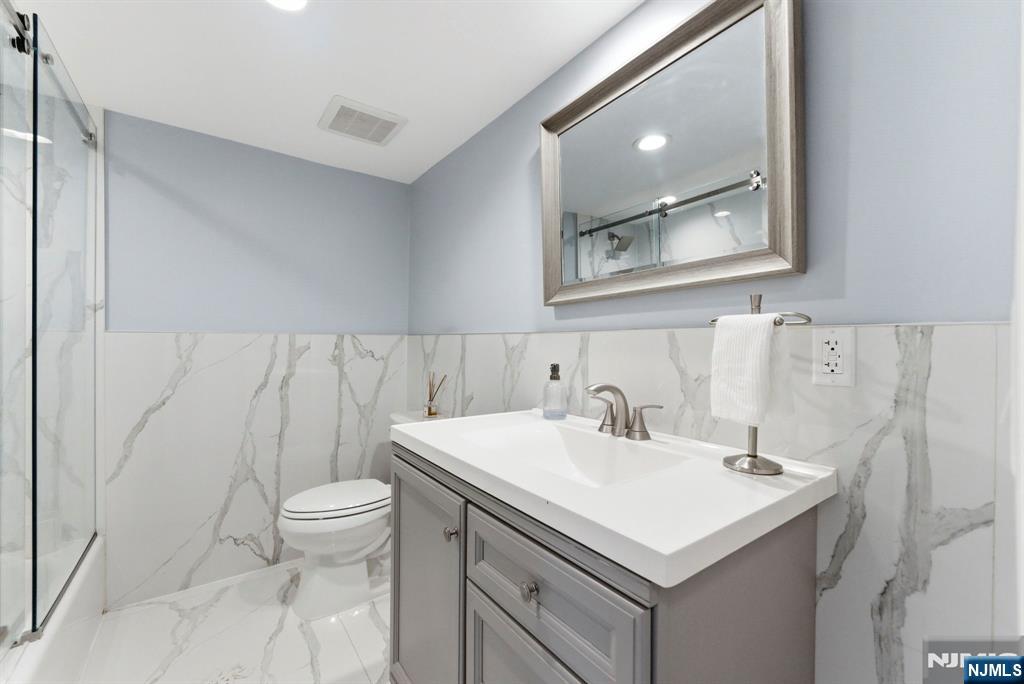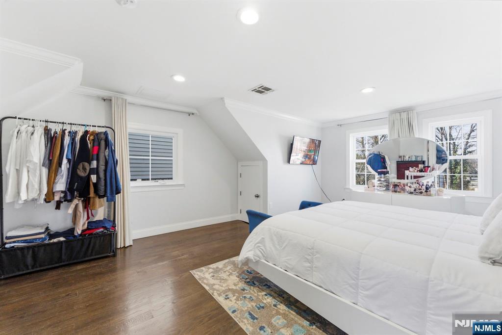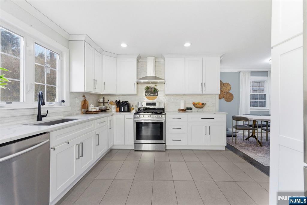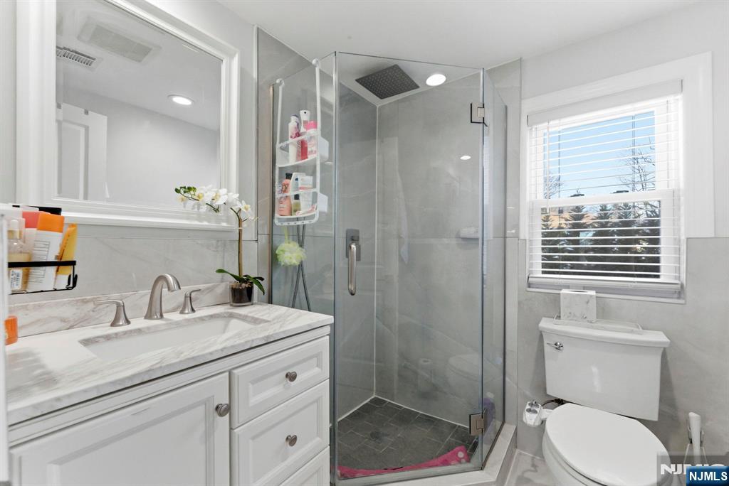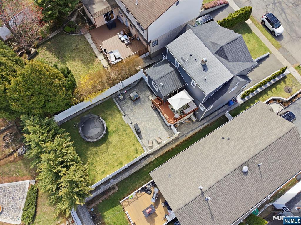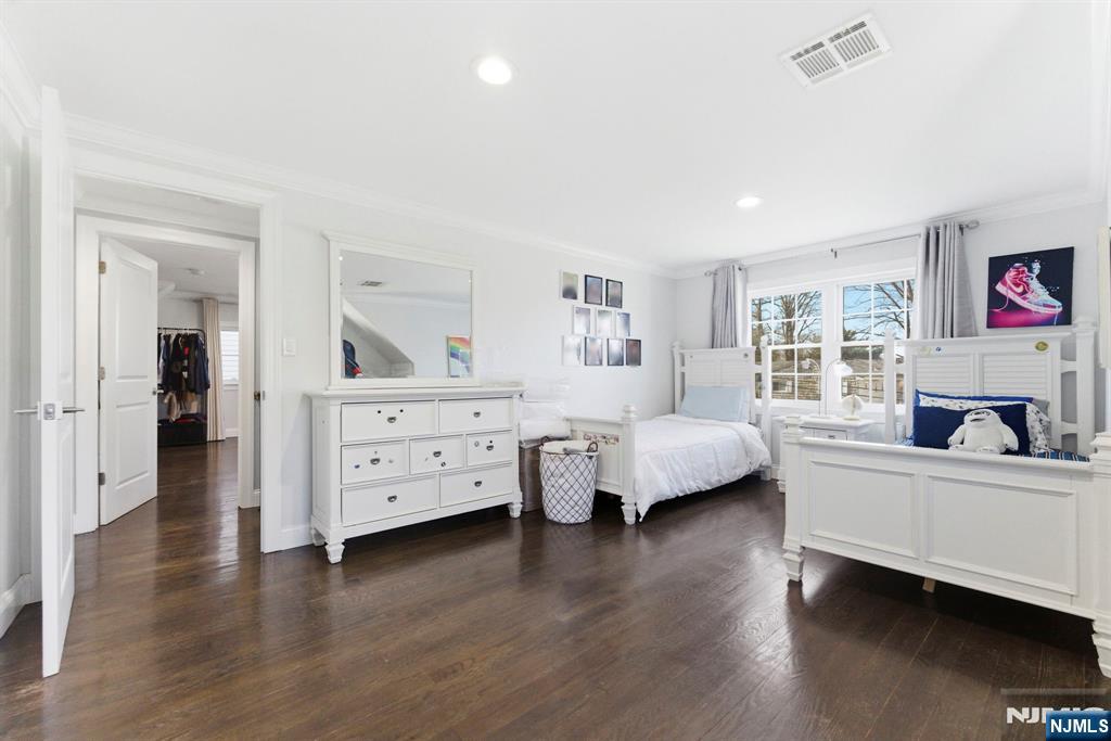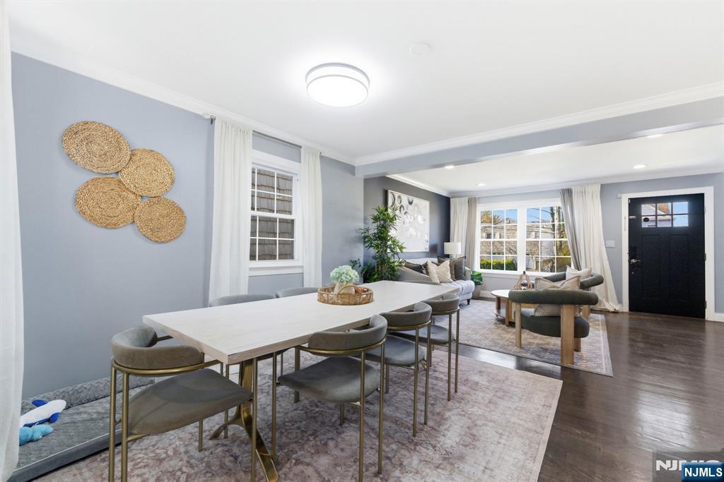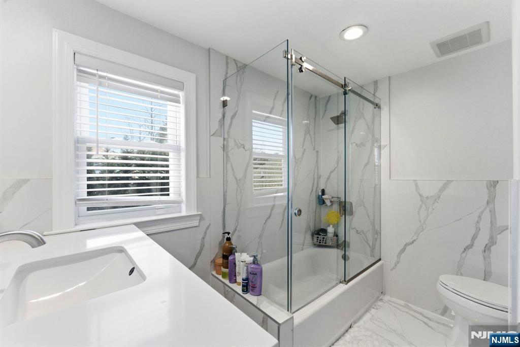 Beautifully reimagined Colonial, fully renovated top to bottom in 2019, blending timeless design with modern functionality. Featuring hardwood floors throughout, marble countertops, stainless steel appliances, and a seamless open concept living and dining space that feels both elevated and inviting. The main level offers two bedrooms and a full bathroom, providing flexibility for guests, a home office, or additional living space for in-laws. Upstairs, you’ll find two spacious bedrooms, each with its own en-suite bathroom and walk-in closet, creating a true private retreat. The finished basement adds additional living space with a recreation area, laundry room, and direct access to the garage. Just off the kitchen, step out to your private backyard featuring a deck and fully fenced grass area, ideal for both quiet mornings and entertaining. Perfectly positioned on a quiet residential street while offering unmatched convenience. Train station just 2 minutes away and a short 5-minute walk to NYC bus access. Garden State Plaza only 6 minutes away for premier shopping and dining.