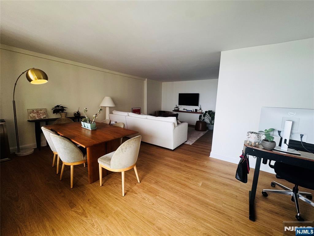 This tastefully updated, light-filled condo offers an exceptional blend of comfort, style, and convenience. The inviting unit features one oversized bedroom, one full bathroom, a kitchen, and a spacious open-concept living/dining area with beautiful New York City views. A private balcony extends the living space outdoors and offers the perfect spot to relax or entertain while taking in the city views. Recent updates include new energy-efficient windows, flooring, interior doors, light fixtures, and a quartz bathroom countertop, adding to the charm of this well-appointed apartment. Ample storage throughout the unit makes everyday living and organization easy. Amenities include two indoor parking spaces, a pool, tennis court, basketball court, playground, community room, and an additional private storage unit on the same floor. Conveniently located near public transportation, major highways, schools, houses of worship, shopping, and parks. This condo combines modern living with excellent accessibility. Fees: $250 application fee, $300 elevator reservation fee, and $1,000 refundable move-in damage deposit. Requirements: NTN credit check and proof of income required.
