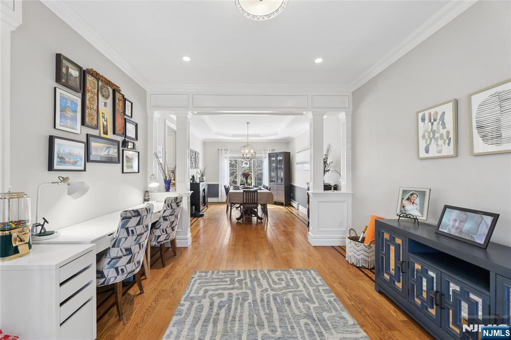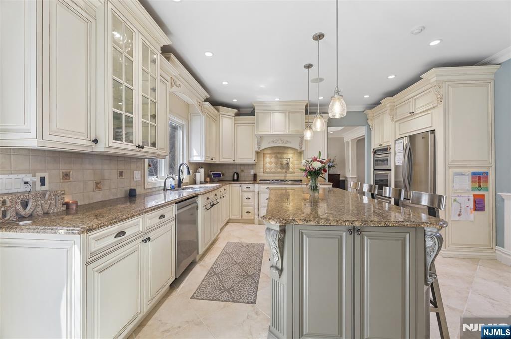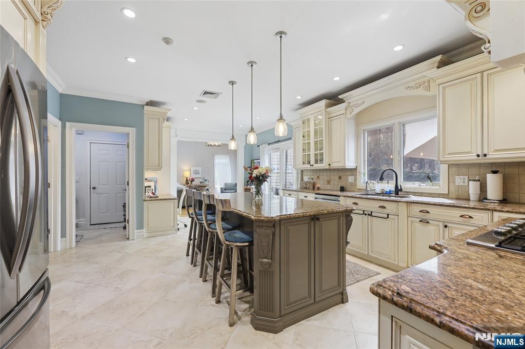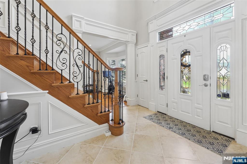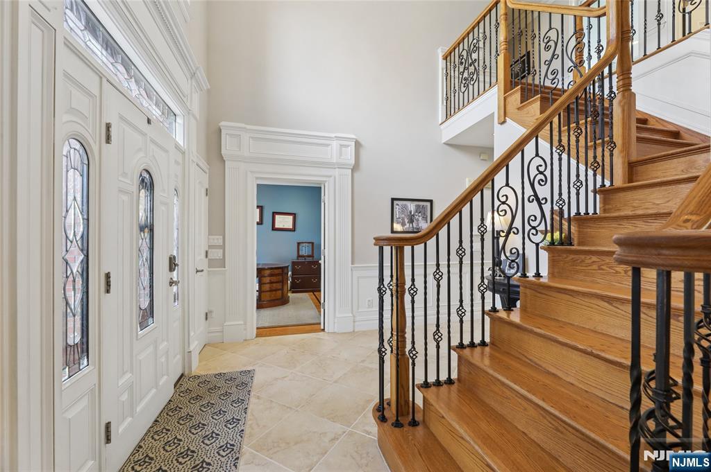 Sophisticated 2008 Colonial in one of Paramus’s coveted neighborhoods. A grand two-story foyer introduces sun-filled, elegant interiors. The main level offers an executive office, formal living and dining rooms, and a chef’s kitchen with a large center island flowing into a vaulted family room with a gas fireplace. Upstairs, the serene primary suite features a walk-in closet and spa-inspired bath, complemented by three additional bedrooms. The finished lower level impresses with a spacious recreation area, theater room with fireplace, guest bedroom, and full bath. Enhanced by a paved driveway, 4-zone radiant heat, mudroom, and composite deck. This home delivers refined, move-in-ready living.