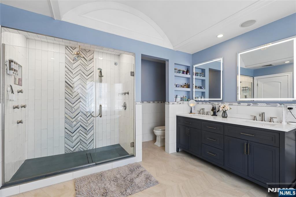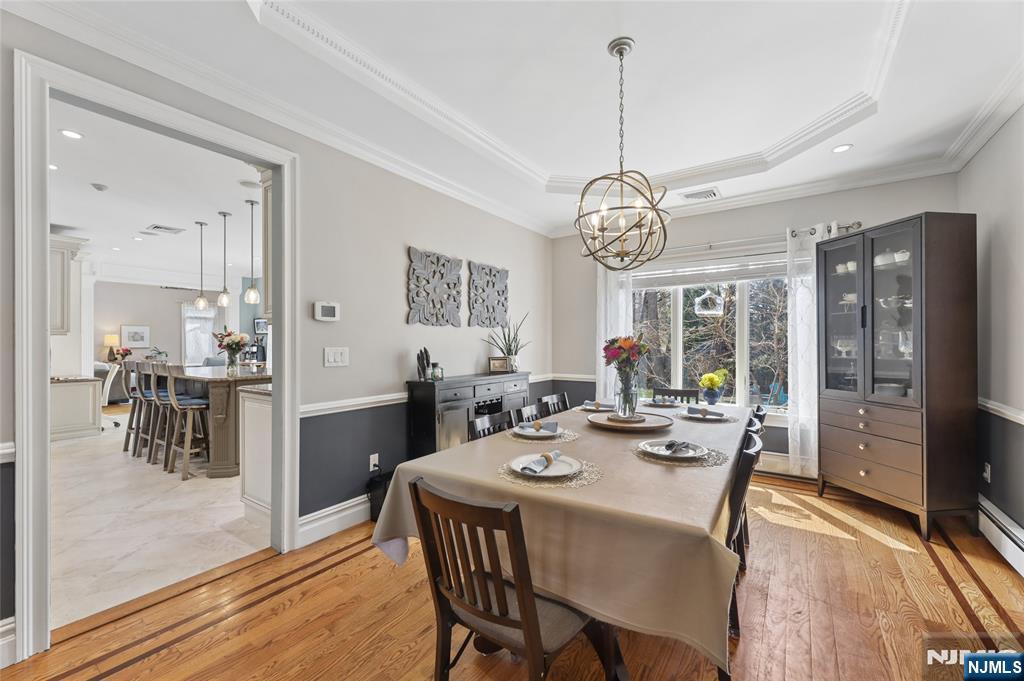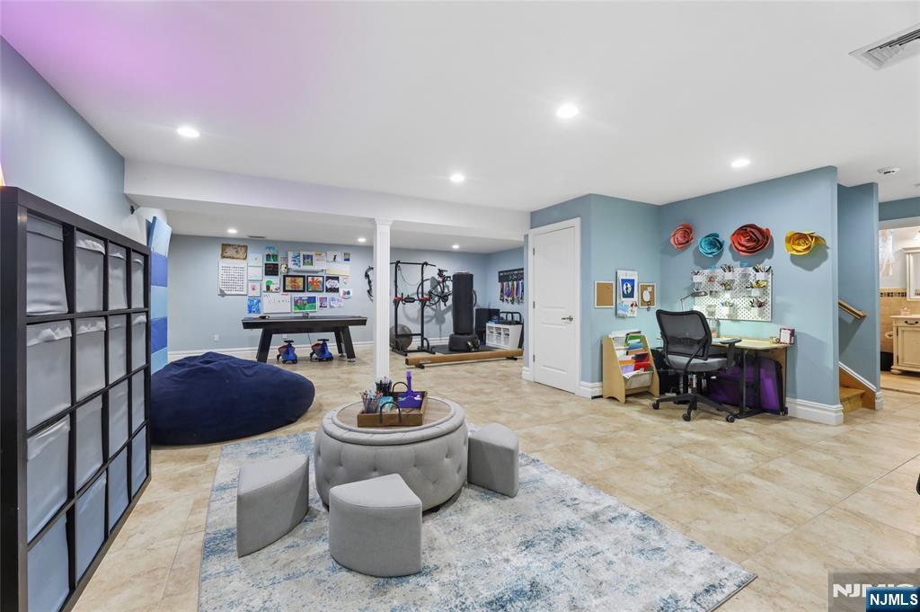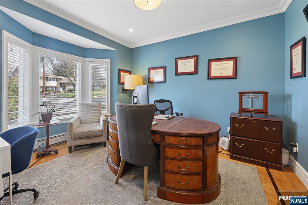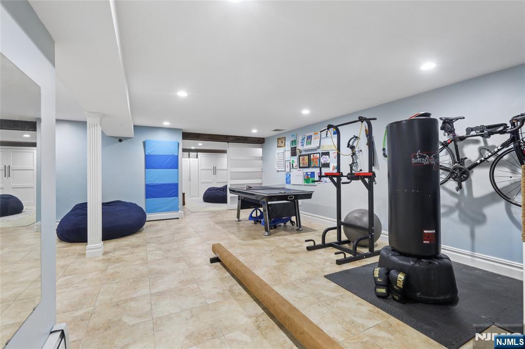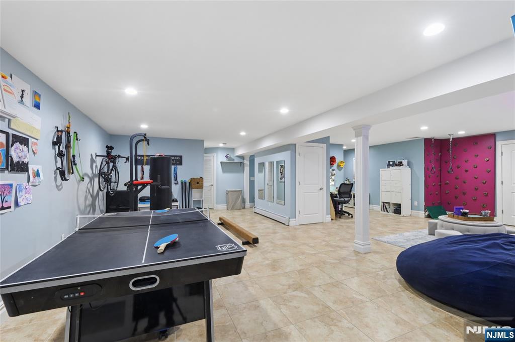 Sophisticated 2008 Colonial in one of Paramus’s coveted neighborhoods. A grand two-story foyer introduces sun-filled, elegant interiors. The main level offers an executive office, formal living and dining rooms, and a chef’s kitchen with a large center island flowing into a vaulted family room with a gas fireplace. Upstairs, the serene primary suite features a walk-in closet and spa-inspired bath, complemented by three additional bedrooms. The finished lower level impresses with a spacious recreation area, theater room with fireplace, guest bedroom, and full bath. Enhanced by a paved driveway, 4-zone radiant heat, mudroom, and composite deck. This home delivers refined, move-in-ready living.