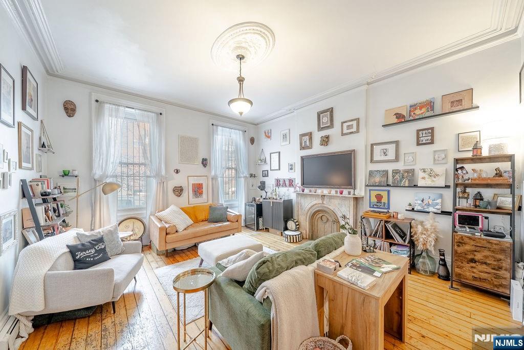 I am excited to share details regarding a premier living opportunity in one of the area's most sought-after locations. This charming two-bedroom condo is perfectly situated near the PATH, a vibrant art community, and numerous rooftop dining options. The location is ideal for commuters, offering a quick 7- to 14-minute trip into the city. Whether you are seeking a convenient pied-à-terre or looking to downsize to a more active community, this neighborhood offers an exceptional lifestyle with the convenience of one-floor living. From local farmers markets to live theater, the area provides a variety of daily activities and amenities. The residence itself features high ceilings, an original mantelpiece, and oversized windows that fill the space with natural light. A standout feature is the original hardwood flooring; while it currently maintains a beautiful rustic appeal, the floors are of exceptional quality and could be easily transformed with a light sanding. Additionally, the bedrooms are spacious and well-proportioned, with direct access to the outdoor area? to enjoy Spring and Summer.