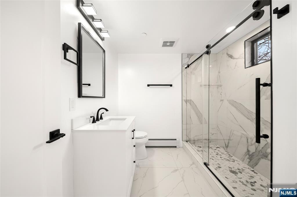 This stunning triplex offers breathtaking views of the mountains, river, and NYC skyline. Located on a quiet dead-end st., it provides a peaceful environment. The property features a 3-car garage and 3 parking spaces.3600 sf, this spectacular multi-level townhome is built on a solid poured concrete foundation and 12-inch-thick concrete walls, ensuring durability. FR w/ porcelain tile & bath - Private backyard with patio. Elegant staircase to the 2nd FL. Open LR with breathtaking views of the Hudson River and NYC skyline through a large picture window- Open kitchen featuring an oversized quartz island and S.S appliances, Full DR& The third floor includes a large primary bedroom w/ a full bath, a separate shower room, a soaking tub, and a walk-in closet. There’s also a large two-bedroom suite that comes with its own bathroom.- The fourth floor can be used as a master suite with an open layout, summer kitchen/wet bar, and sliding glass doors that lead to a rooftop deck. The deck is outfitted with glass railings, making it perfect for entertaining and enjoying the fantastic views. Additional features of this custom-built home include oversized Anderson windows, recessed lighting, a separate garbage room, all-paved parking lots, a baseboard heating system with 6 zones & 2-zone CA, CV System. Conveniently located just minutes from the Edgewater/NYC Ferry and the George Washington Bridge, this property is also close to shopping, transportation, and restaurants.