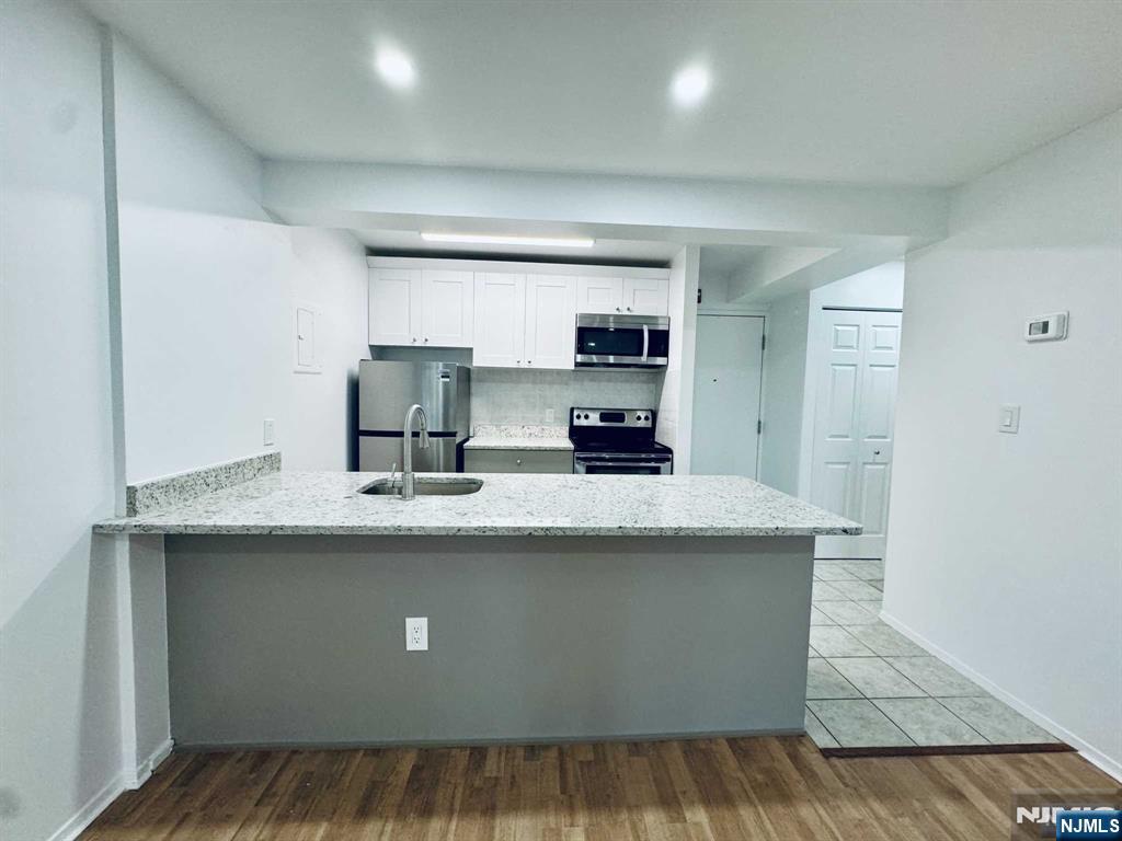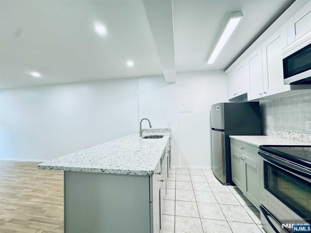 Introducing a newly renovated, serene one-bedroom apartment located in the center of Palisades Park. This bright and airy unit boasts an inviting open floor plan, featuring a brand new kitchen w/quartz countertops, new recess lights, hardwood flooring throughout, an energy-efficient hot water baseboard heating system, a modernized bathroom, and a spacious living area with generous closet space. Facing the other side of Grand Ave, with an open view, this unit offers both privacy and tranquility. Its prime location provides convenient access to major highways and bus routes, ensuring an effortless commute to NYC. Enjoy the vibrant local community with nearby attractions such as King Spa, Overpeck Park, a variety of supermarkets, and an array of diverse dining options and cafes. Additionally, include a reserved parking spot, with water included in the rental. Schedule your viewing today! Note: No pets are permitted in the building. Move in Fee- $150,refundable $500 move in deposit