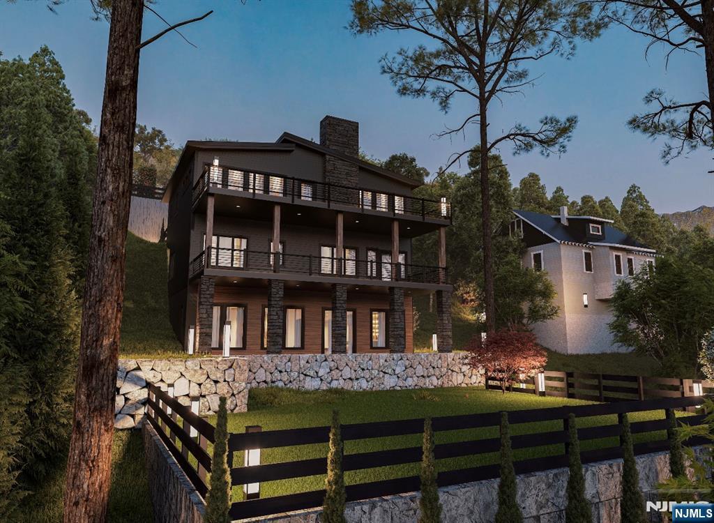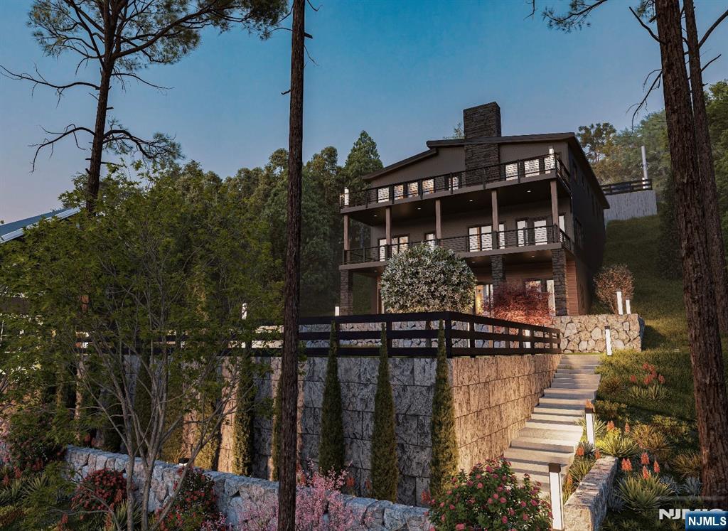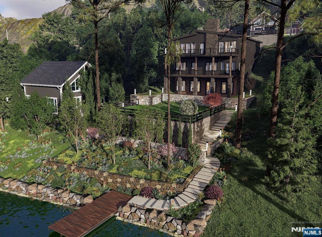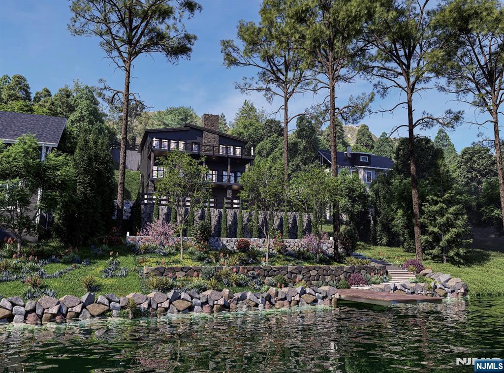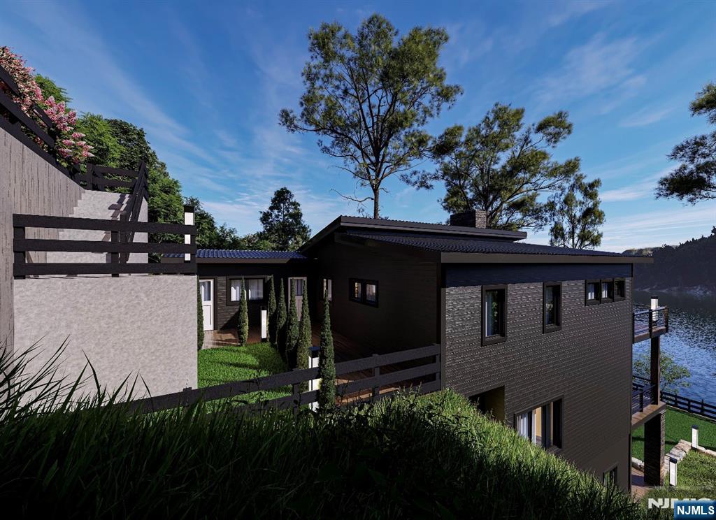 A rare opportunity to own a brand new, architecturally striking lakefront home in the highly sought-after Erskine Lakes community of Ringwood. Thoughtfully designed to embrace the natural topography, this custom residence offers three levels of finished living space (approx 3700 sq ft), expansive decking, and stunning lake views from nearly every room. The main living level features a bright, open-concept layout with a designer kitchen, oversized island, dining area, and spacious family room. Walls of glass and sliding doors lead to a full-width deck perfect for entertaining or simply taking in the peaceful surroundings. A primary suite on this level provides convenience and privacy, complete with a spa-like bath and generous closet space. The middle level offers two additional bedrooms and flexible living space, ideal for guests, home office, or recreation, all designed with modern flow and functionality in mind. The walkout lower level is a true standout, featuring exceptional ceiling height specifically designed to accommodate a golf simulator, along with ample space for a media room, gym, or game area. Direct access to outdoor terraces and professionally designed landscaping enhances the indoor-outdoor lifestyle. Enjoy all that Erskine Lake has to offer, including year round social events, beach club, access to beaches, boating, and a vibrant lake community all just under an hour from NYC. To be built- bring your vision and make this exceptional lakefront home your own.