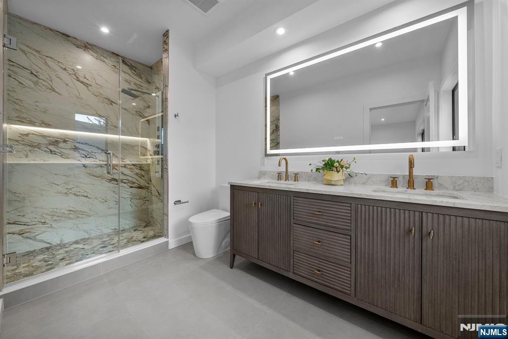 Step into this stunning, modern duplex in the heart of Palisades Park where style, space, and convenience come together effortlessly. From the moment you arrive, you’ll notice the sleek design and high-end finishes that make this home truly stand out. The ground level offers incredible flexibility with 2 bedrooms, a full bathroom, a summer kitchen, and direct access to both a private backyard and an attached two-car garage. With two separate side entrances, this level is perfect for extended living or added privacy. Upstairs on the 1st floor, the main living area is filled with natural light pouring through oversized picture windows, creating a bright and inviting atmosphere. You’ll love the beautifully designed kitchen, complete with modern cabinetry, premium appliances, a built-in wine fridge, and access to your own private balcony. The living room is equally impressive, featuring a sleek electric fireplace that adds both warmth and style. Located just moments from downtown shopping, dining, and NYC transportation, this home offers the perfect blend of luxury and convenience.