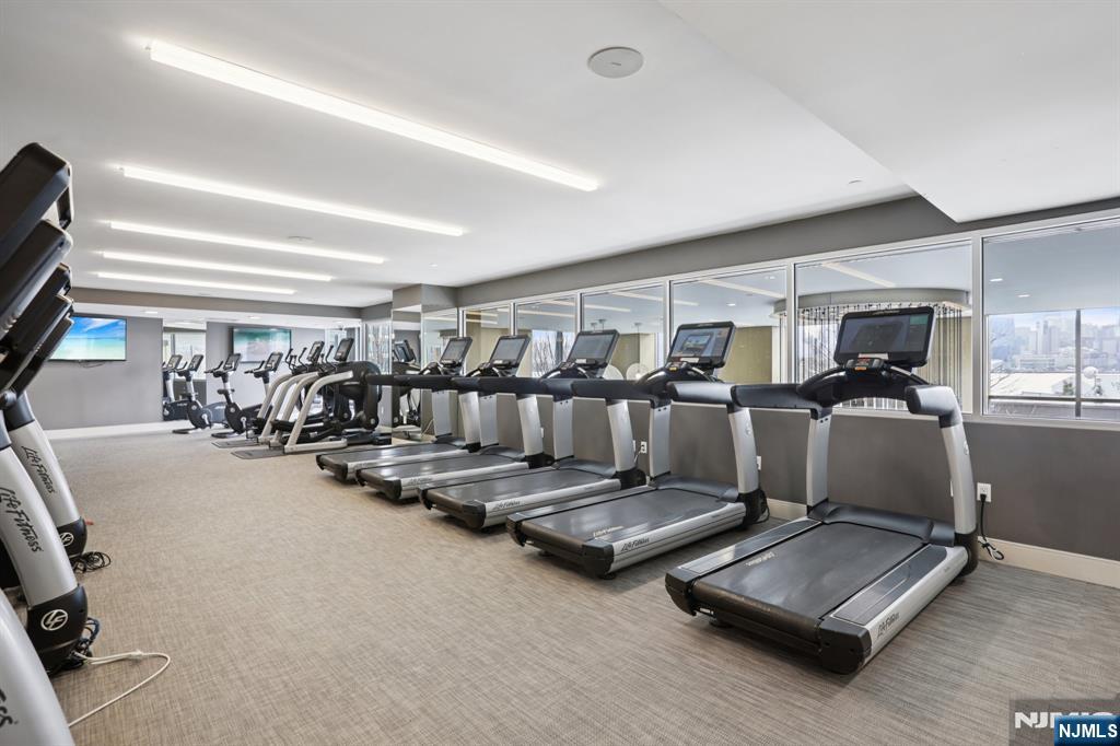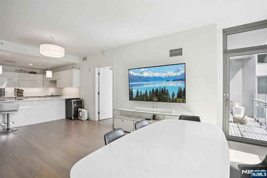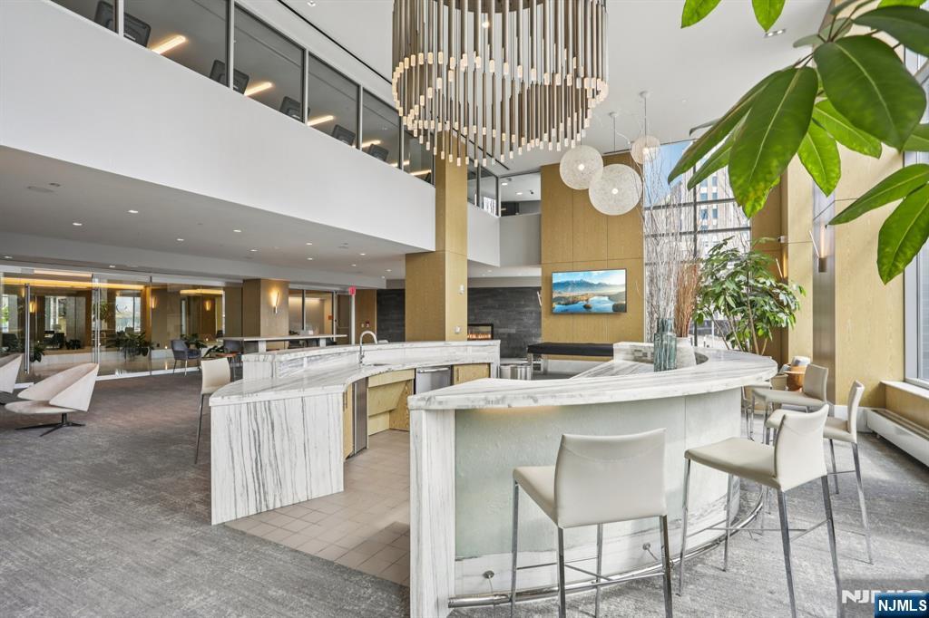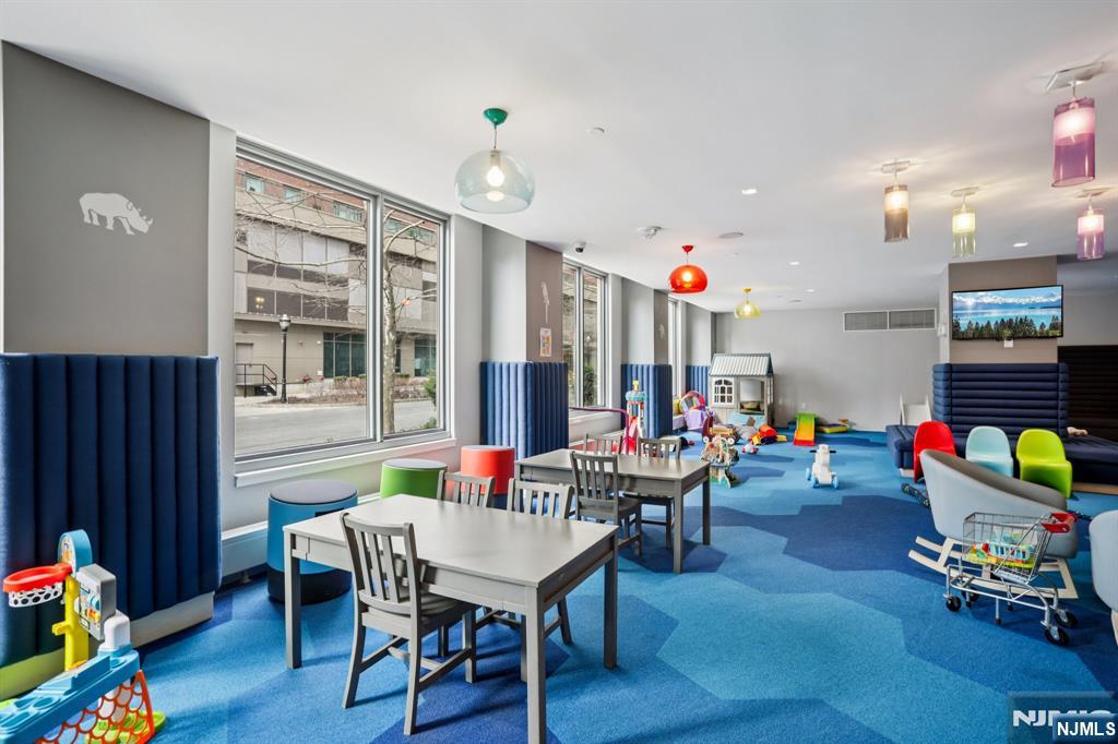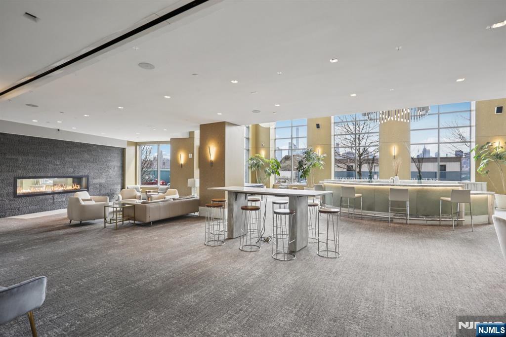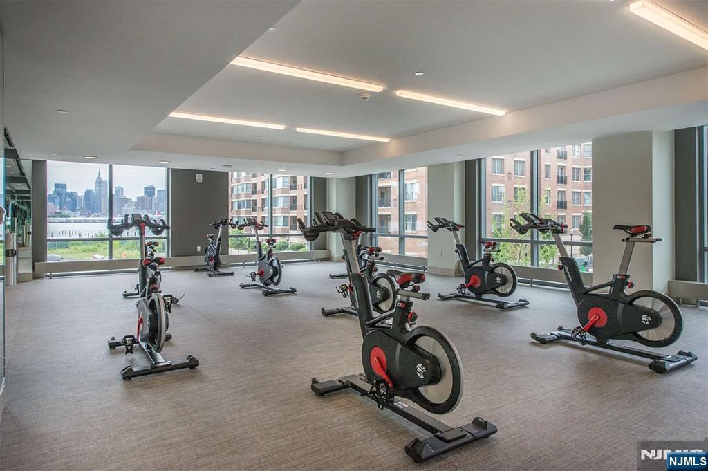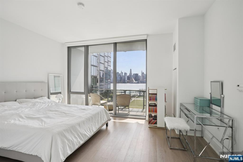 Nine on the Hudson is a premier luxury waterfront condominium located in Port Imperial, completed in 2018 and renowned for its upscale finishes, stunning Manhattan skyline views, and resort-style amenities. Residence #513 is a highly sought-after and rarely available floor plan. This spacious 2-bedroom + den, 2-bathroom home offers approximately 1,704 square feet of elegant living space, featuring breathtaking panoramic views of the New York City skyline from the main living area, primary suite, and private balcony. The open-concept layout is designed for both comfort and entertaining, highlighted by a modern kitchen with quartz countertops, Bosch appliances, and a Thermador refrigerator. Luxury amenities include a 24-hour doorman and concierge, resident lounge, two-story fitness center, sauna, children’s playroom, Golf simulator, and party room. Landscaped courtyard with BBQ area, Outdoor swimming pool. Shuttle provides convenient access to the Port Imperial Ferry, making commuting to Manhattan effortless. This unit includes one parking space and one storage unit. Benefits from a valuable tax abatement in place through 2038.