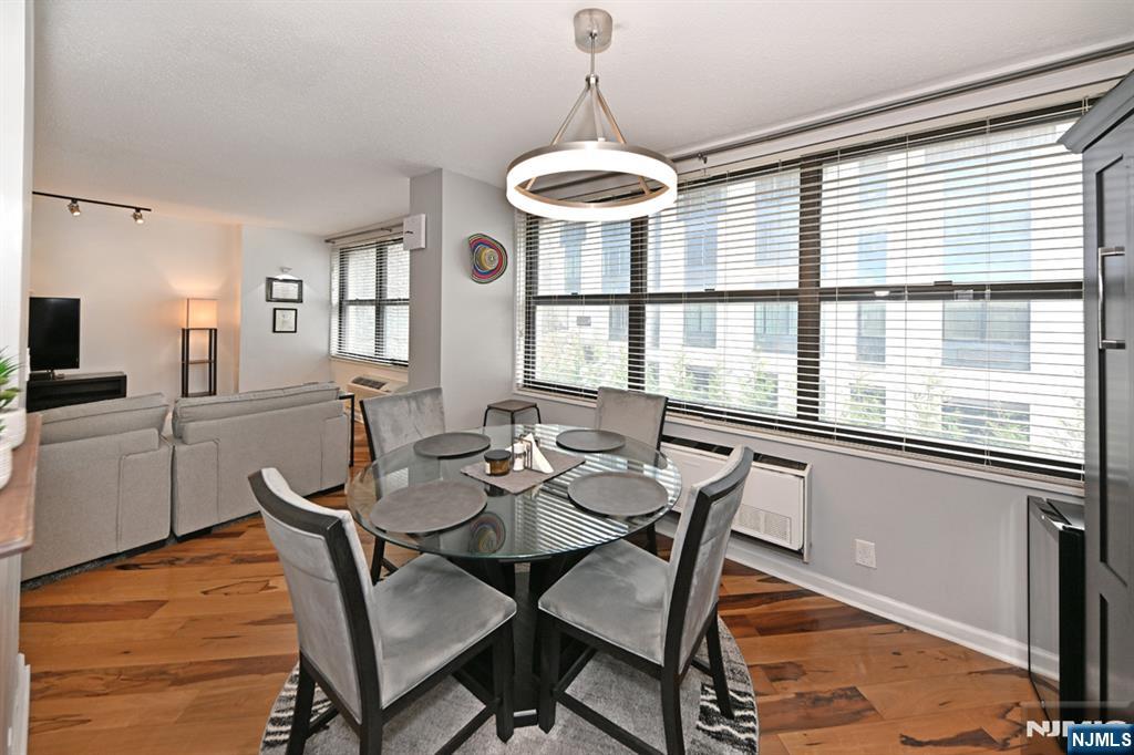 Experience luxury high-rise living where serenity meets community. This beautiful renovated 979sf condominium offers a thoughtfully designed layout with one spacious bedroom featuring an en-suite bathroom along with a convenient half bath for guest. The kitchen is both elegant and functional, showcasing rich dark chocolate cabinetry, stainless steel appliances, granite countertops, a sleek glass backsplash, and tiled flooring-all seamlessly flowing into the dining area. Designed with versatility in mind, the dining space features a Murphy bed, making it idea for hosting guests. Creating a home office, or adapting to your lifestyle needs. Gorgeous hardwood floors run throughout, complemented by an abundance of custom closets that provide both typle and exceptional storage. Residents of the Galaxy enjoy an impressive array of amenities designed to promote wellness, relaxaton, and connection. Indulge in a state-of-the-art fitness center, tennis courts, indoor and outdoor pools, hot tub, sauna, and steam rooms-all exclusively available to residents. The community is thoughtfully designed to nurture the body, mind and soul. ALL AMENITIES AND UTILITIES ARE INCLUDED IN THE MONTHLY MAINTENANCE FEE, with parking available for an additonal $120 per space/per month. Relax, recharge, and embrace a lifestyle of comfort and tranquility in your own luxury retreat. First time buyer may be eligible for up to $15,000 in down payment and closing cost assistance.