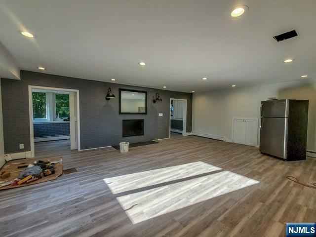 Modern and contemporary 3 bedroom, 2.5 bathroom house for rent on a private street of Englewood Cliffs. This newly renovated unit features an open floor plan with a large brand new kitchen, new floors, a stunning fireplace in the living room, stunning sun room, and more than enough storage for all of your belongings. Upstairs includes a very spacious master suite along with 2 more bedrooms with full bathroom and washer and dryer in unit. Also included is a new paver patio for entertaining, a large garage with an office attached along with more storage. Ready to move in by July 1st.