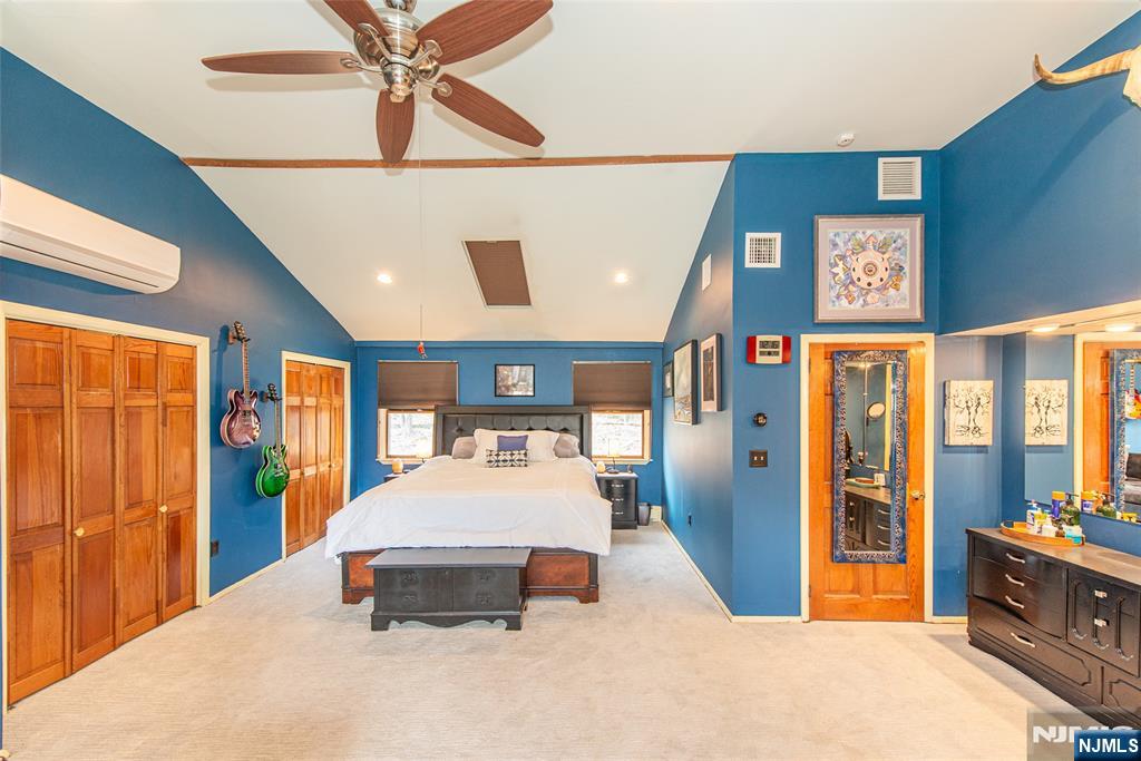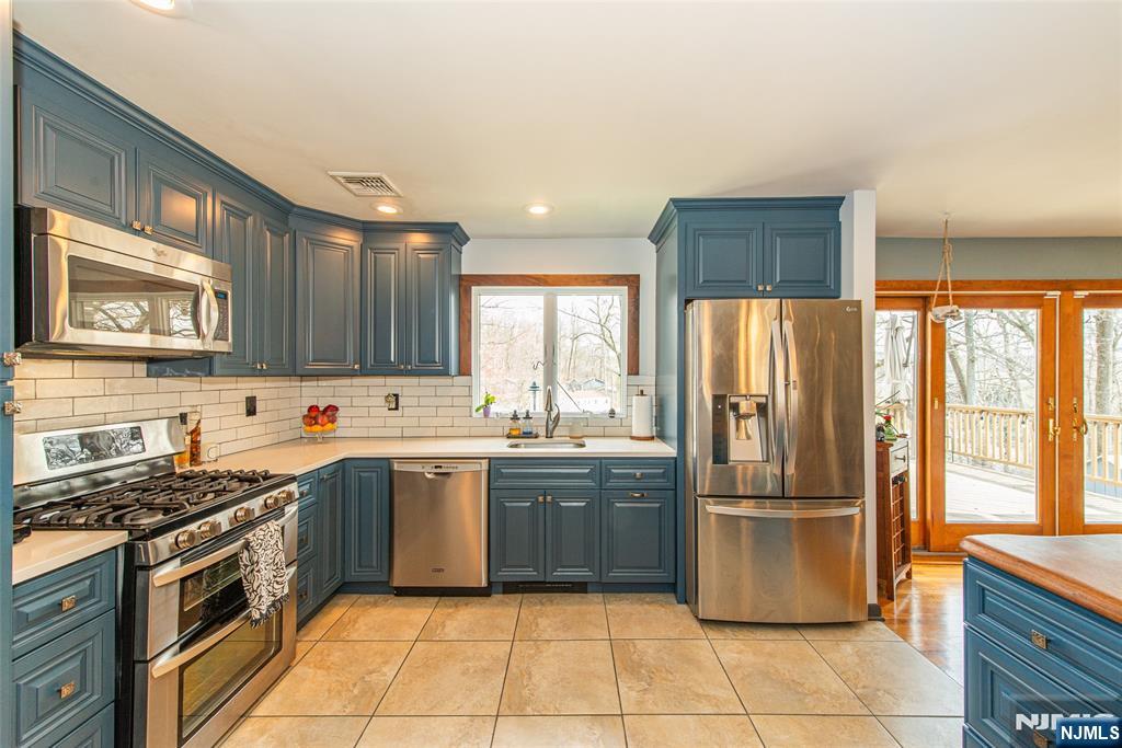 Welcome home to this beautifully updated Lakeside property offering personality, flexibility, and space to live, work, and entertain. Step inside to a bright, open-concept living room, dining area, and kitchen designed for modern living. The updated kitchen features stainless steel appliances, new cabinetry, and a custom wood island that anchors the space. A deck just off the dining area creates easy indoor-outdoor flow, perfect for morning coffee or summer gatherings.Down the hall are three bedrooms and a full bath. One bedroom, currently used as an art studio, includes its own ensuite powder room and could easily function as a home office or ensuite bedroom. Upstairs, the expansive primary suite offers multiple closets and a private bathroom, creating a peaceful retreat.The attached deep one-car garage includes additional storage and a ductless mini-split, making it a versatile year-round space for a gym, workshop, or hobby area. The walk-out basement provides additional flexible living space, currently configured with a home office, rec room, recording studio, and a powder room with space to add a shower. Sliders lead to the fenced backyard and patio with a fire pit overlooking the lake, perfect for relaxing evenings outdoors.Additional highlights include multiple mini-splits. Ideally located around the corner from Albert Terhune Elementary and just minutes from Routes 287 and 23.