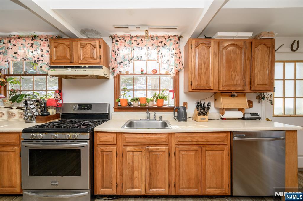 Home Sweet Home! Experience the serenity of 19 Skyland Avenue, a 4 Bed 2.5 Bath storybook Colonial nestled away on a quiet road in the heart of desirable Haskell. This charming home is the ideal mix of character, comfort, and convenience, with space to settle, grow and make it your very own. Step in to find a welcoming, warm interior with generous room sizes and plenty of natural light all through. The main level features a lovely, light and bright living room, cozy dining area with big bay window, and a sizable upgraded kitchen offering sleek SS appliances, ample cabinet storage, luxury vinyl flooring, upgraded counters and more. The full bath with ceramic tiling and laundry room rounds out the main level of this gem. Upstairs, find 4 generously sized bedrooms, inc the blissful Primary Suite with its own private full bath. Secondary bedroom boasts its own convenient 1/2 bath with hallway access. Peaceful, plush, private backyard with patio is perfect for enjoying your morning coffee or summer bbq's. Serene Rainbow Lake is just a 3 minute stroll away, perfect for nature enthusiasts and relaxing walks around the water. With low taxes, incredible mountain views, and close proximity to town, schools, shopping, houses of worship, and easy access to nearby highways and the NYC public transit bus line, this hidden gem offers a harmonious blend of tranquility and convenience. Don't miss out! Claim your slice of Skyland Avenue today! **Property being sold AS IS**